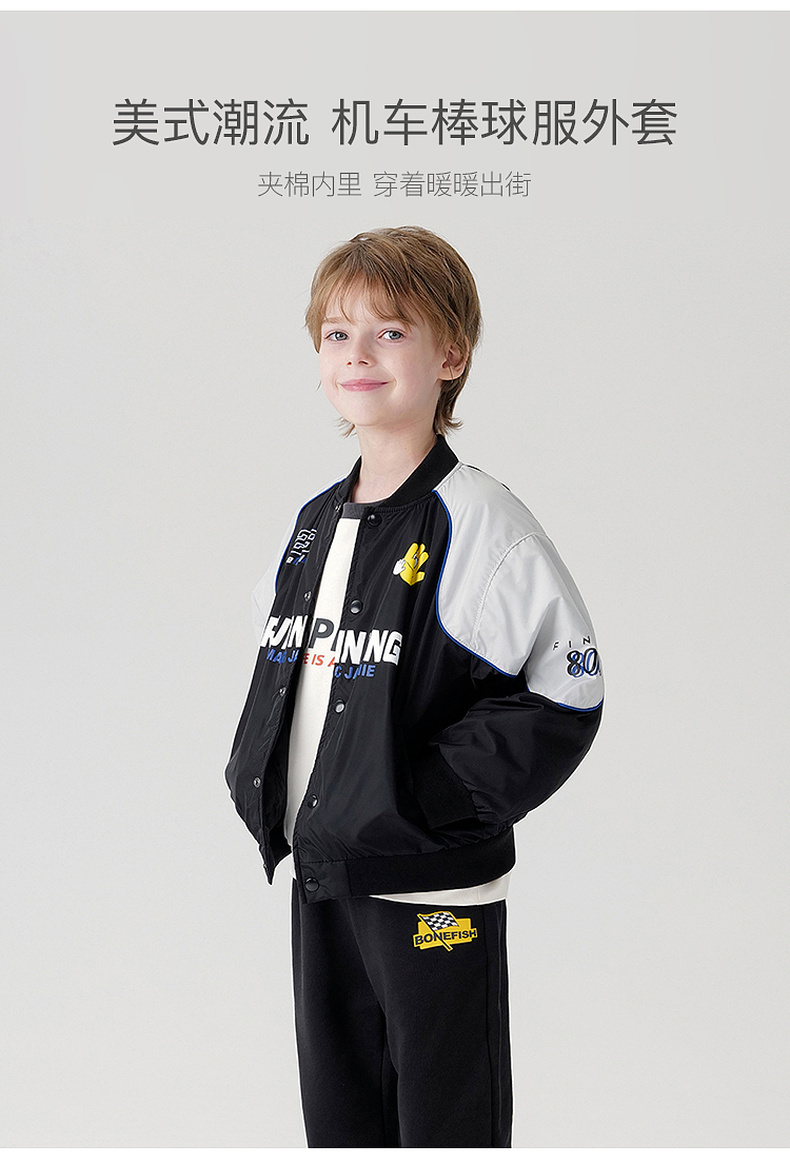 【三防】马克珍妮男童机能赛车夹棉棒球服外套2024秋冬新款241193