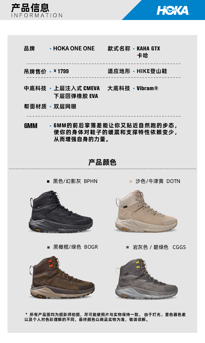 HOKA ONE ONE男卡哈KAHA GTX户外中帮防水防滑轻便登山徒步鞋新品