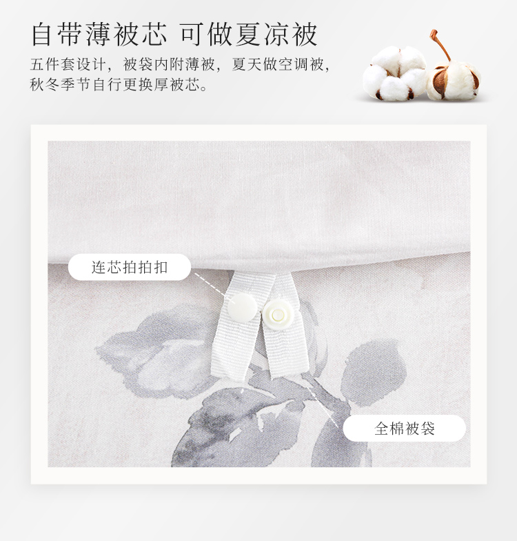 雅芳婷床笠款长绒棉五件套薄被子四件套空调被夏凉被专柜同款 商品图2