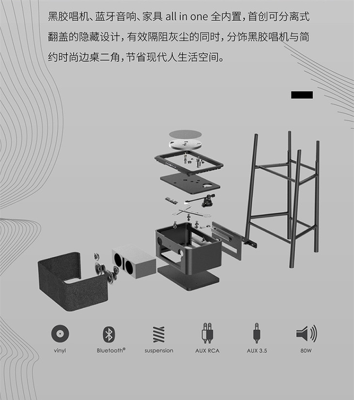 嘿哟HYM-Root黑胶唱片机蓝牙音箱LP留声机复古仿古老式电唱机