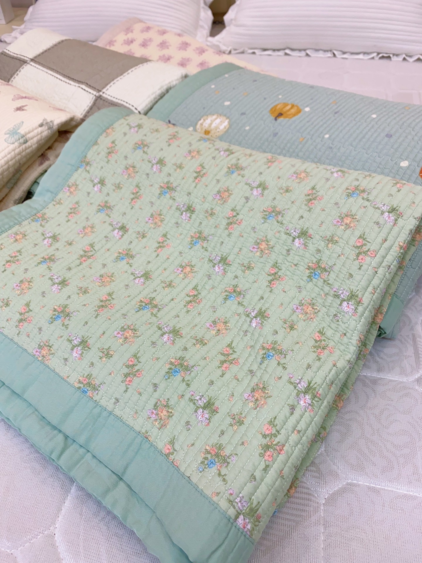双面莱赛尔天丝面料,吸湿透气,体感凉爽舒适 贴身盖柔软,夏天盖它超舒服~ 可盖也可以铺床,空调房里的最佳搭档,告别闷热