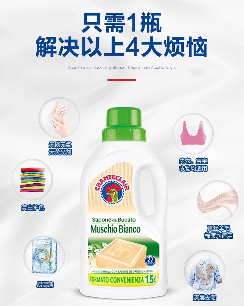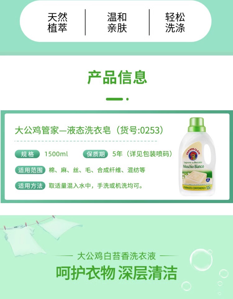 大公鸡管家 液态洗衣皂(白苔香味)1500mL