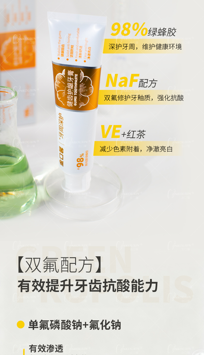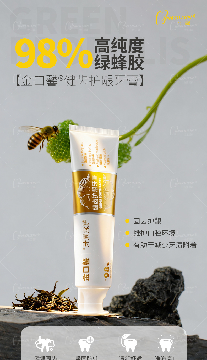 【优牙合】【金口馨】牙周深护牙膏添加98%高纯度巴西绿蜂胶温和滋养减少外源性着色牙膏