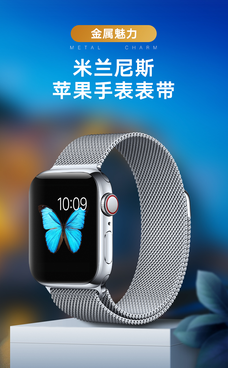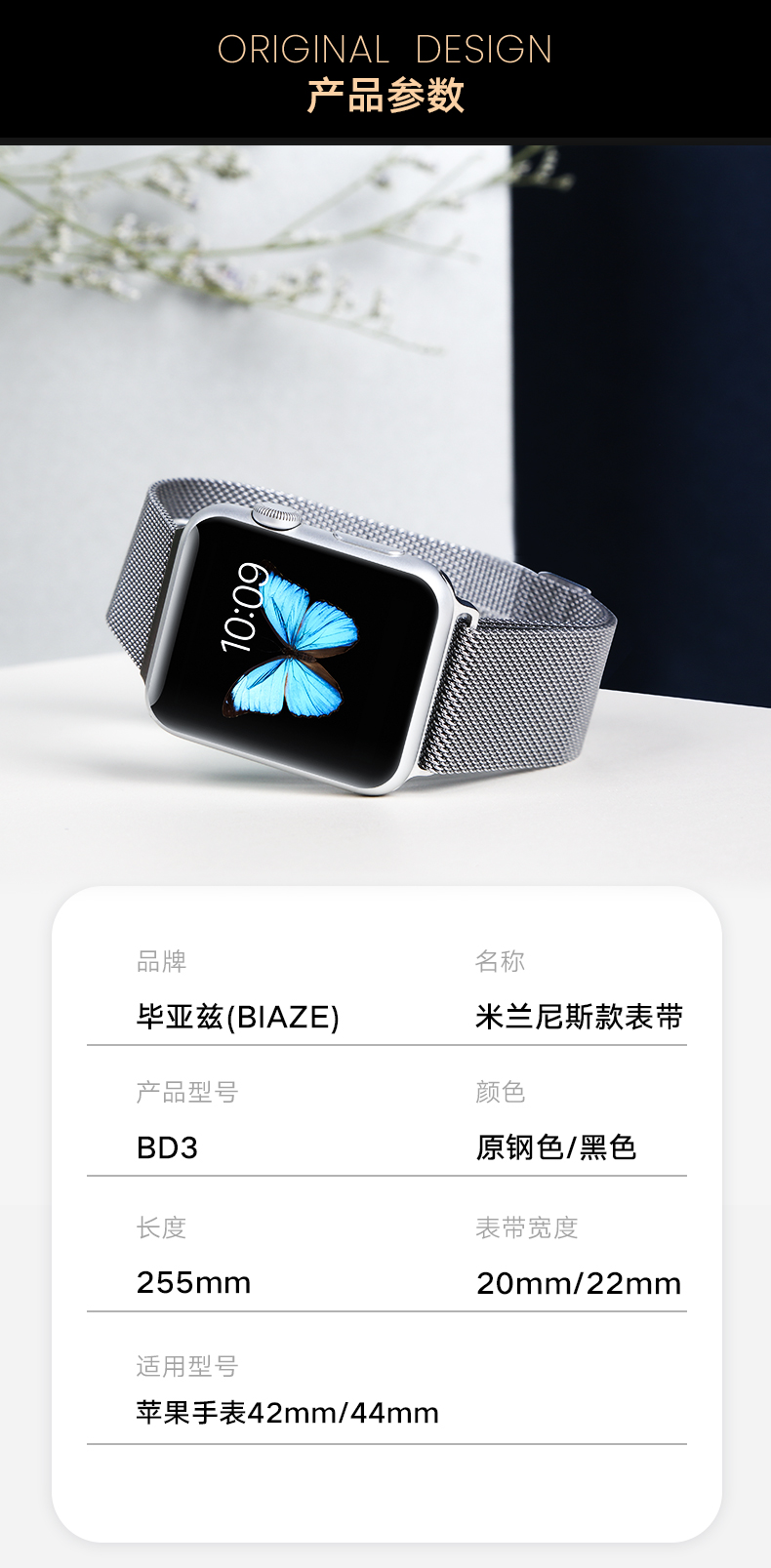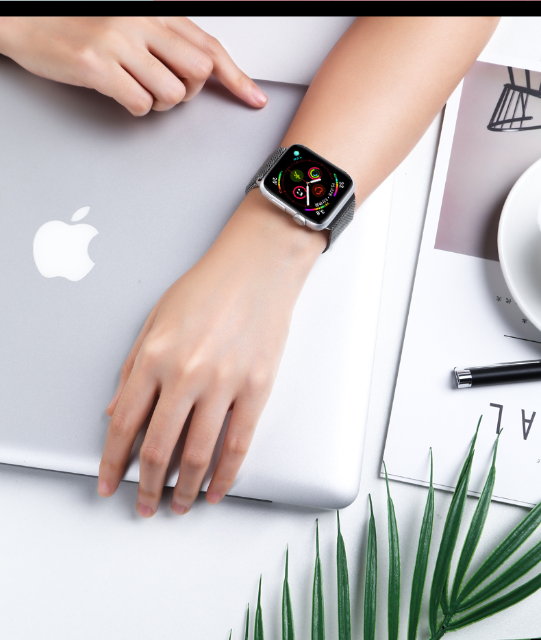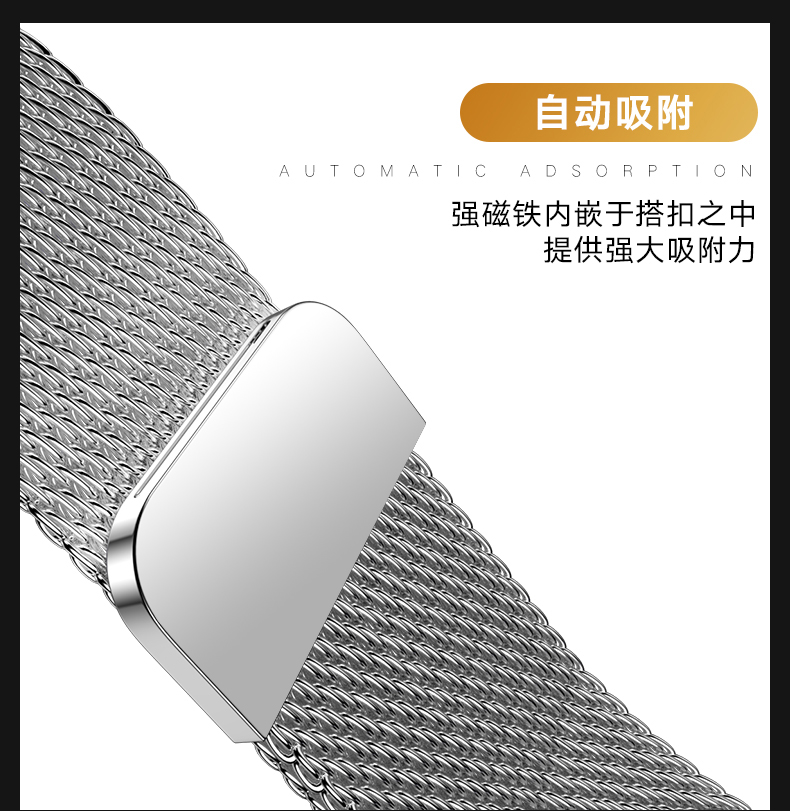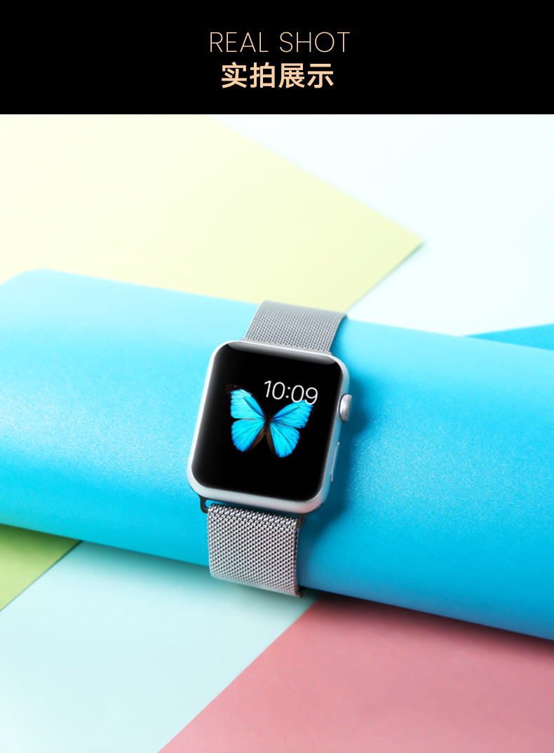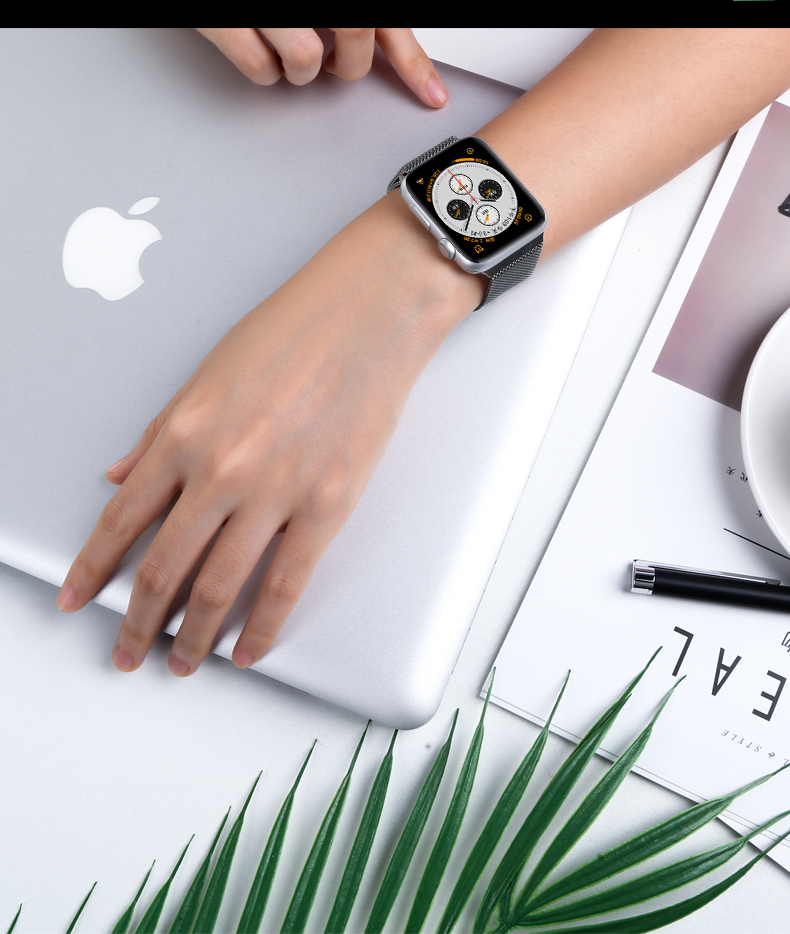 毕亚兹 苹果手表表带 金属磁吸搭扣米兰尼斯表带Apple watch Series 6/SE/5/4/3代通用 42/44mm-BD3黑色