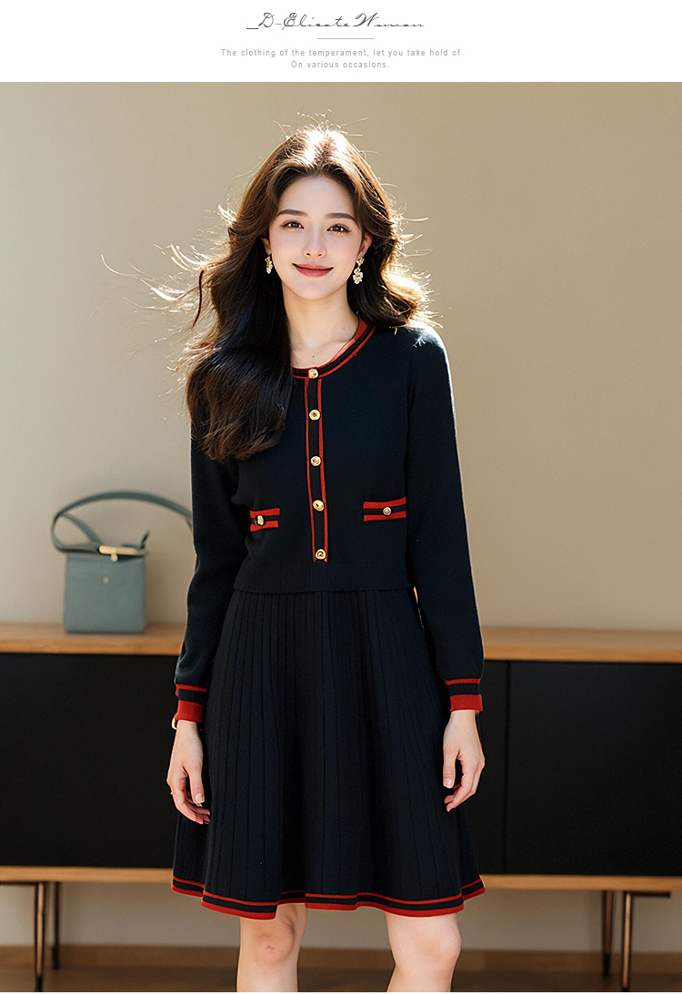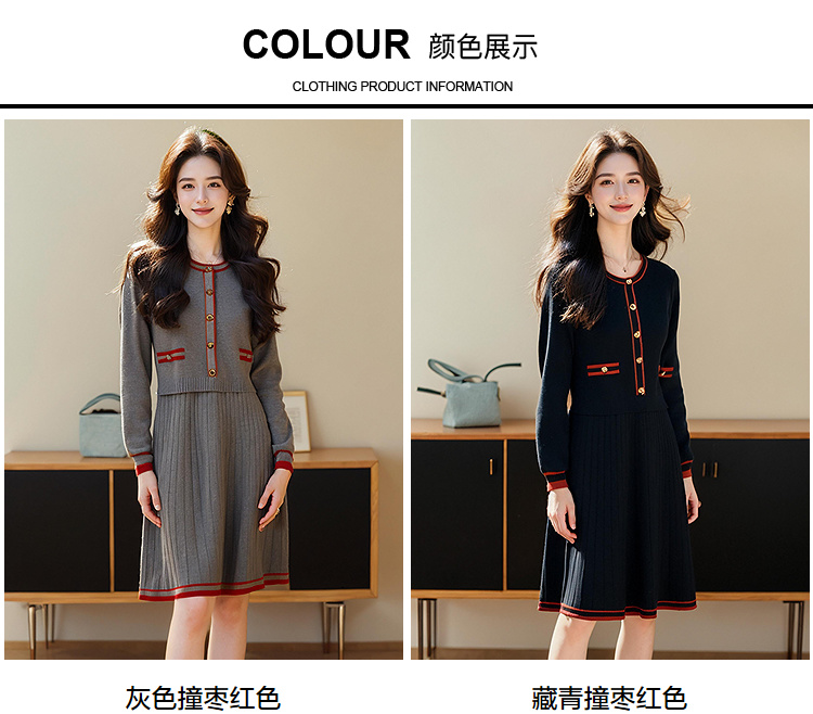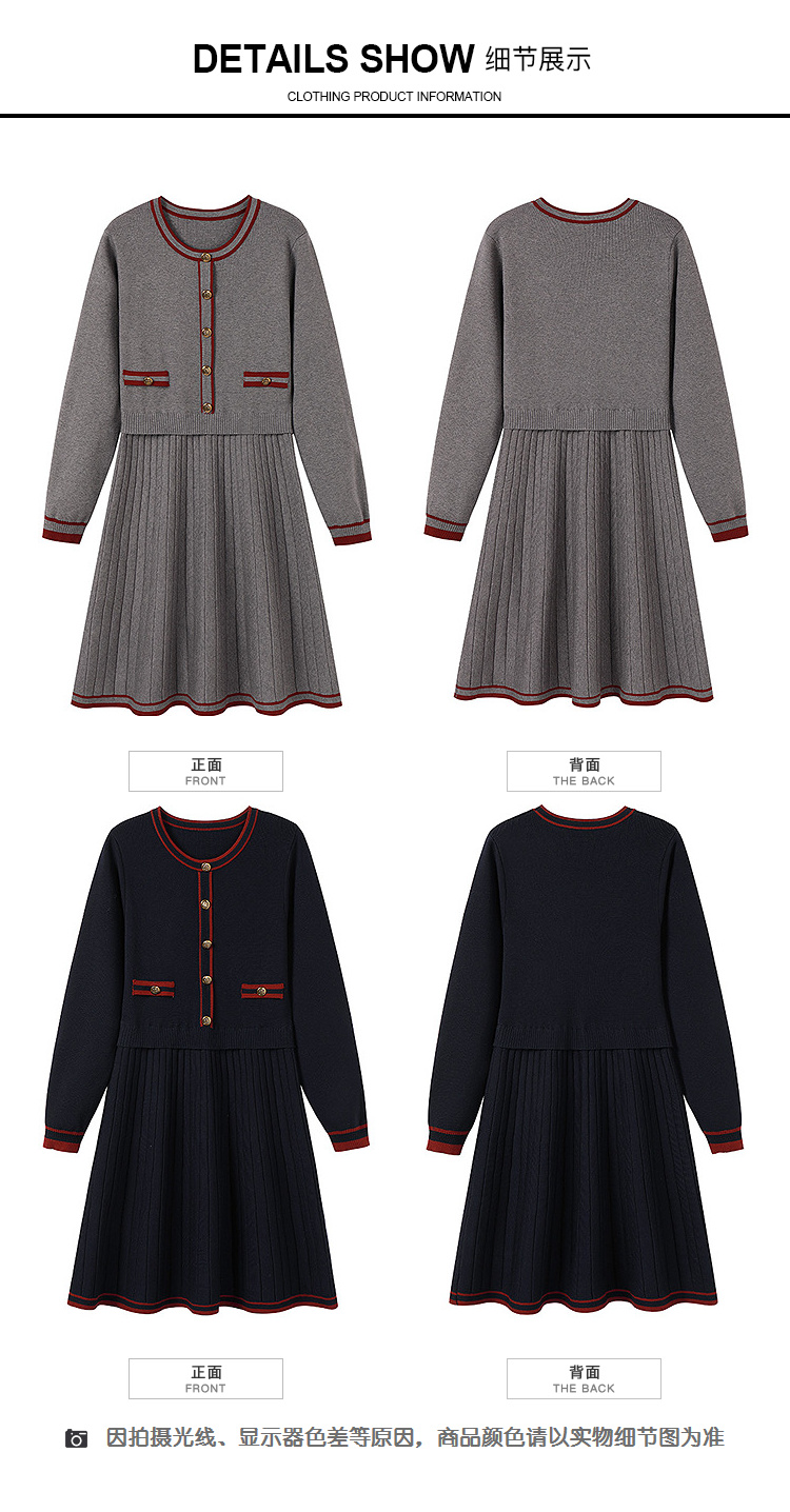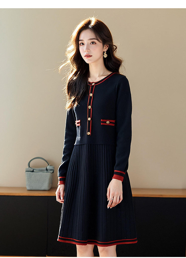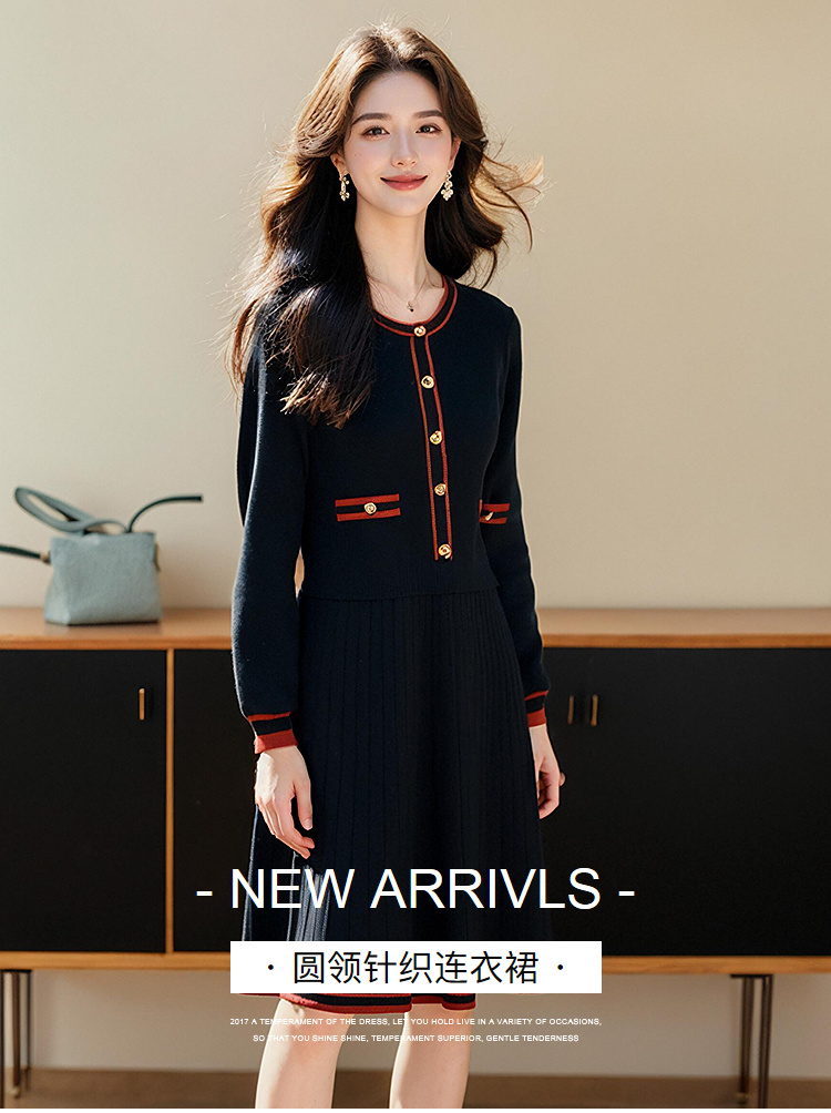 奢姿2025秋季新款胖妹妹大码女装撞色针织连衣裙圆领气质优雅裙子9851820055