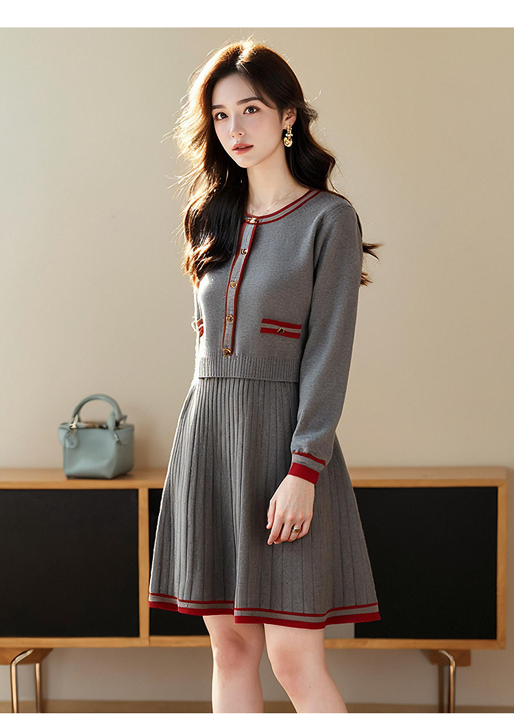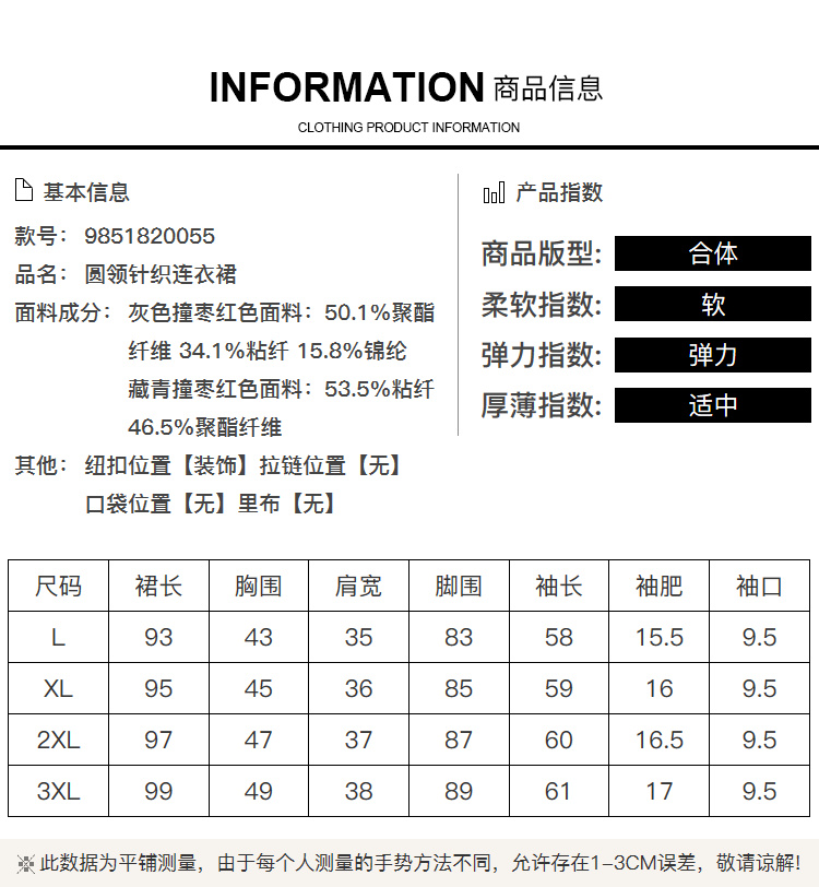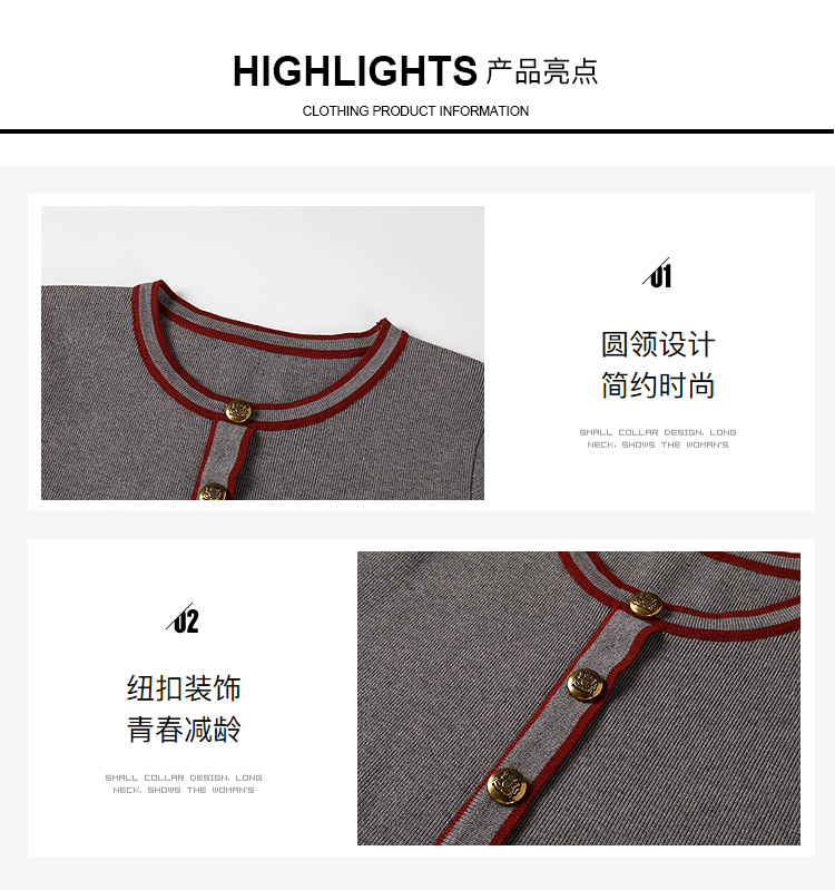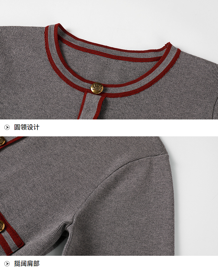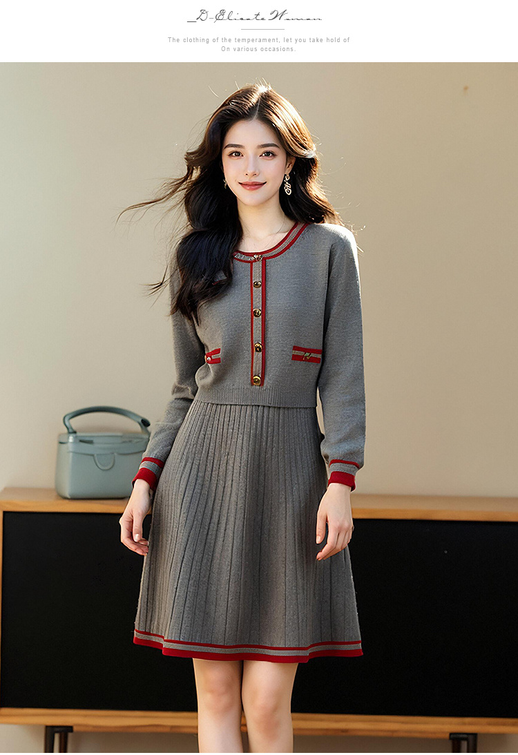 奢姿2025秋季新款胖妹妹大码女装撞色针织连衣裙圆领气质优雅裙子9851820055