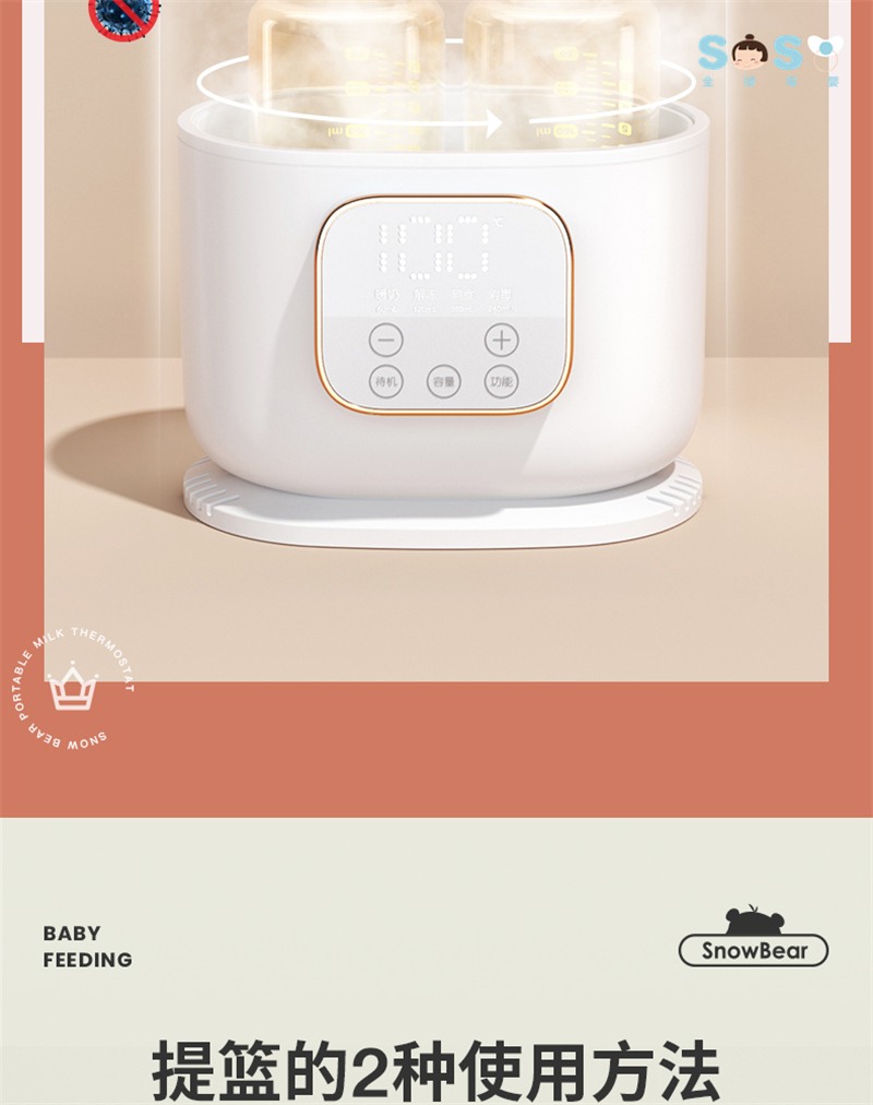 小白熊婴儿暖奶器双瓶恒温温奶器母乳解冻消毒暖奶二合一HL-5051