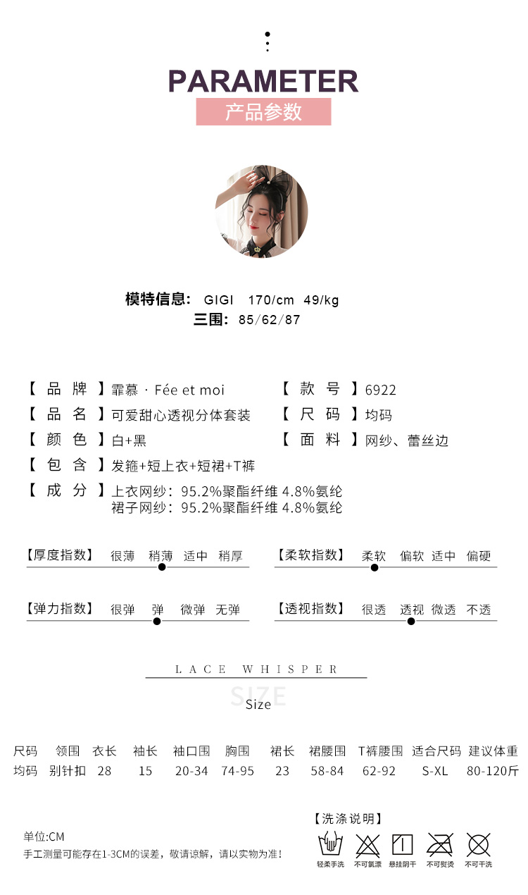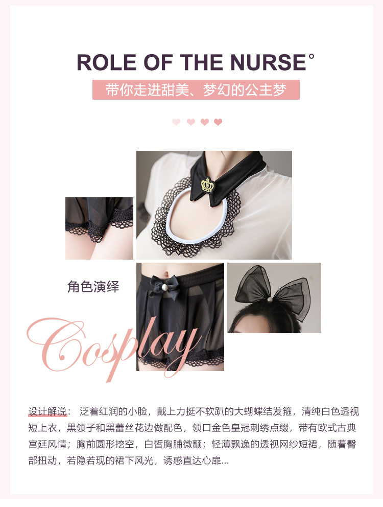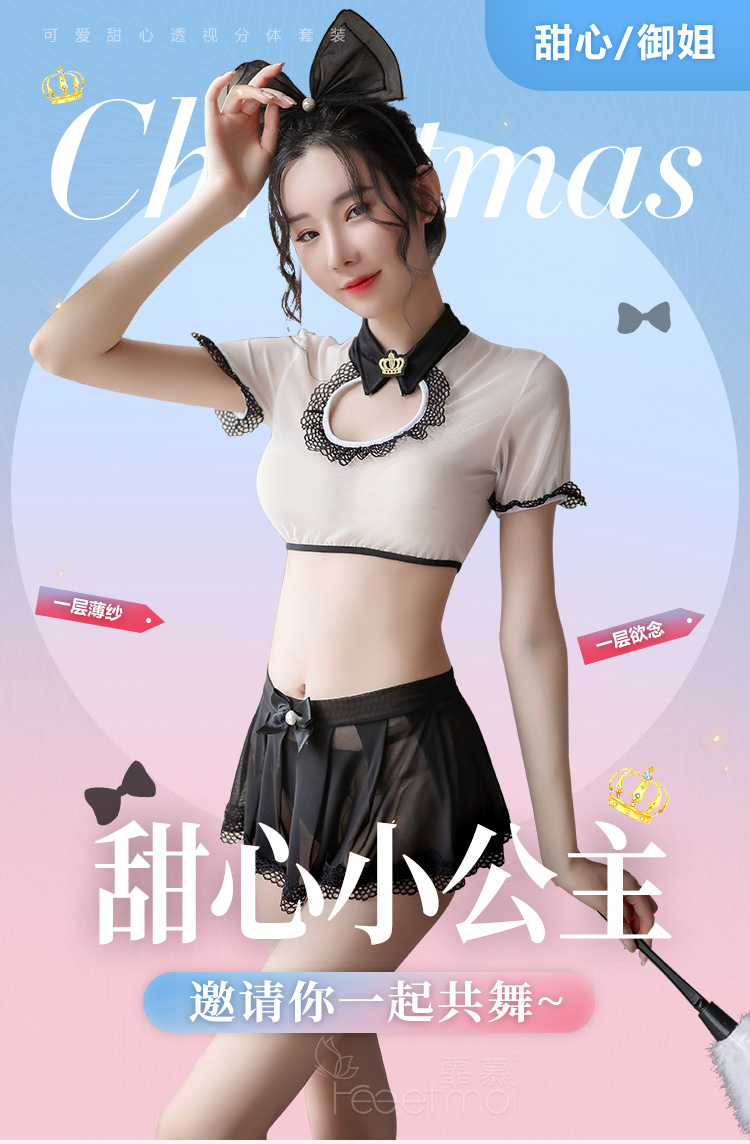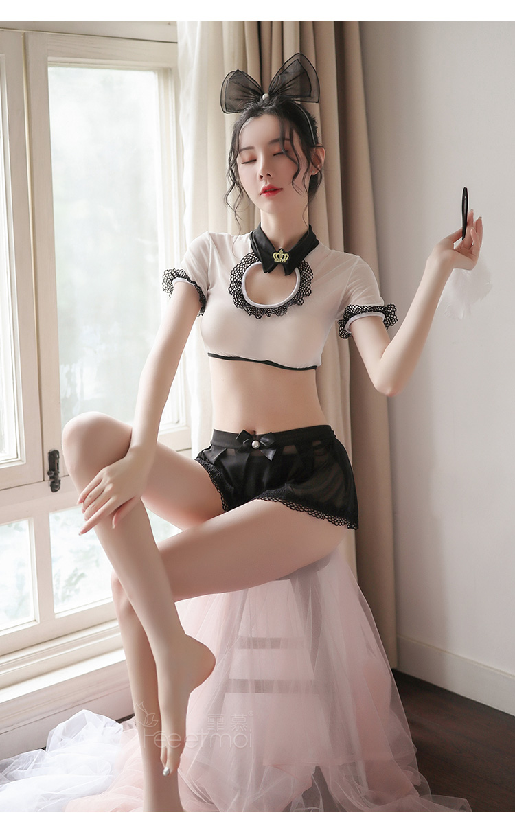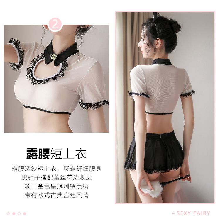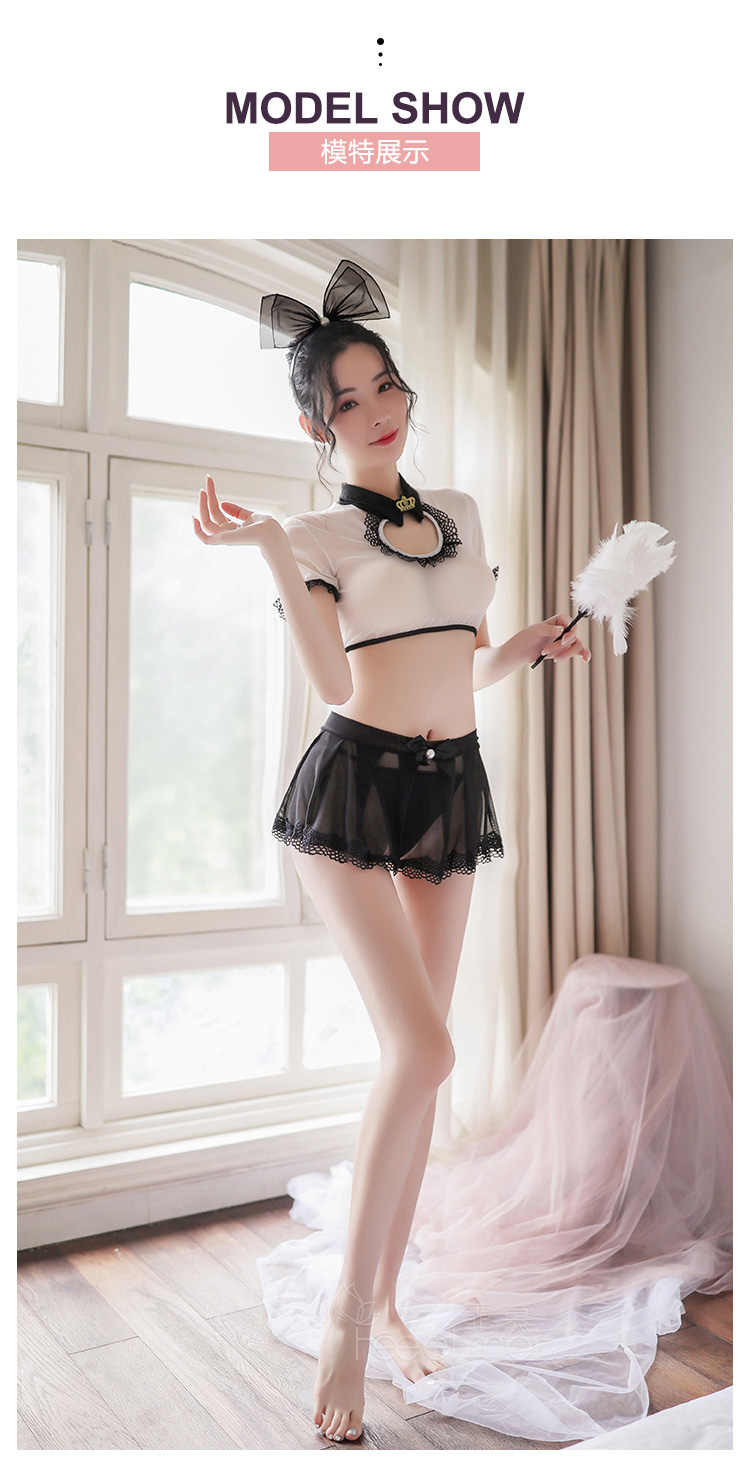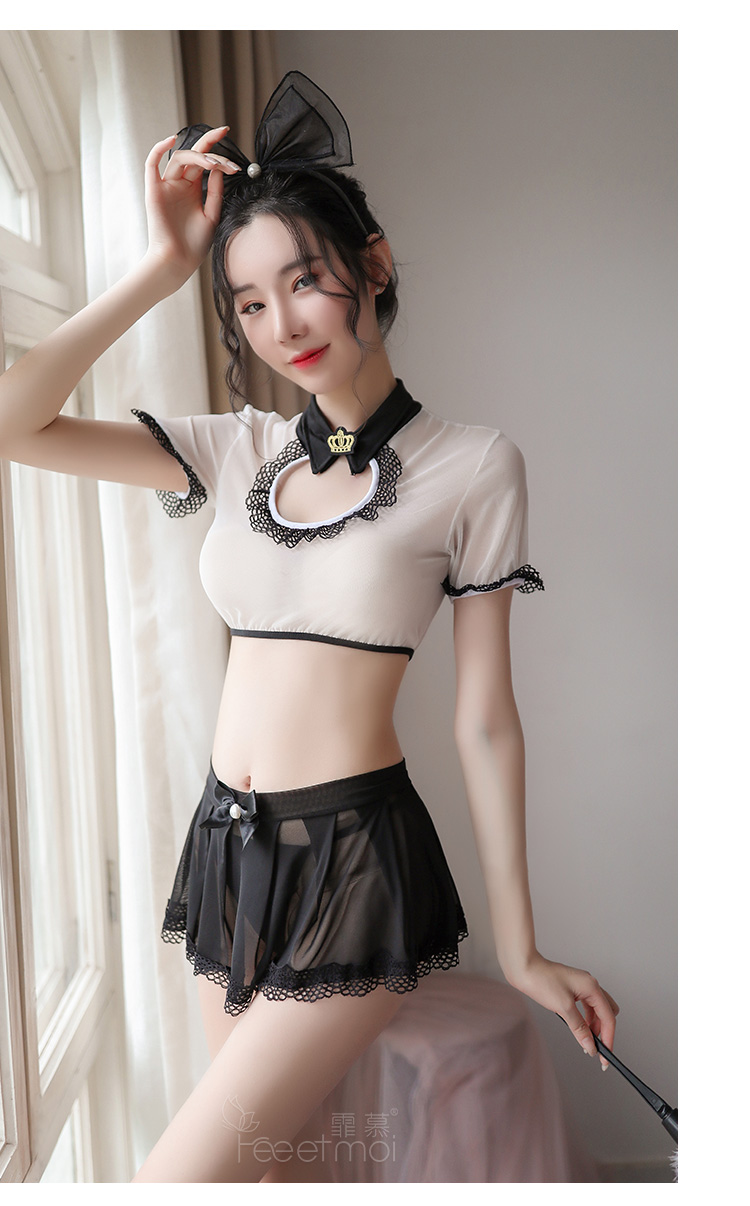 【扑朔迷离】情趣内衣 镂空 露腰 上衣 网纱 制服 可爱 性感 短裙 套装 6922