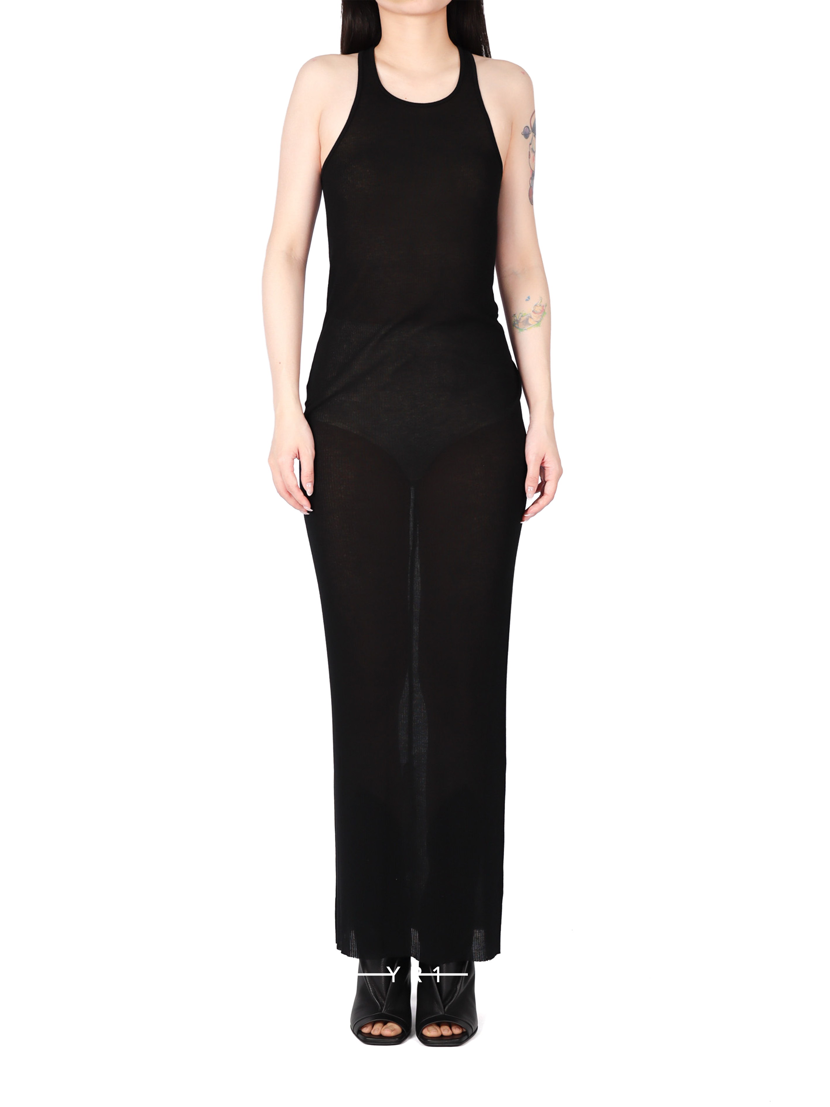 TEMPLE 黑色螺纹工字连衣裙