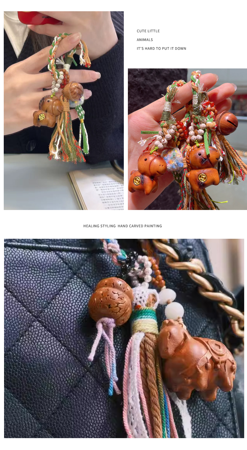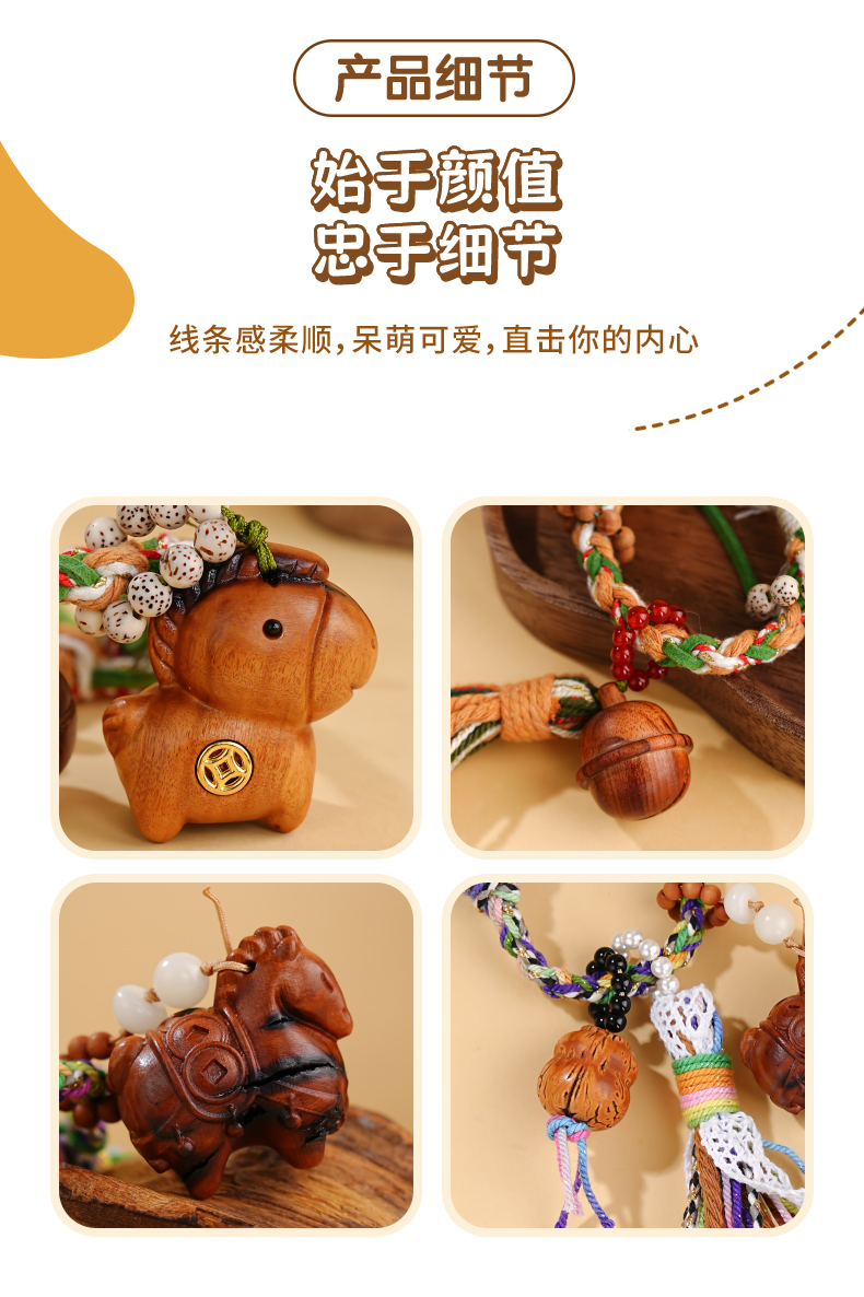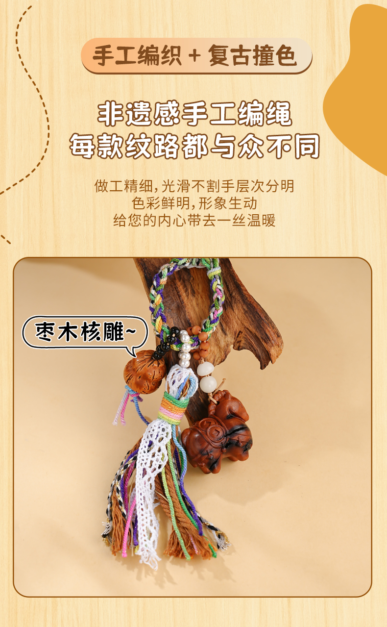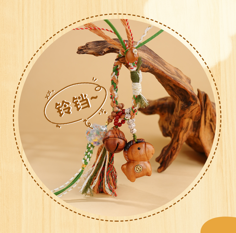 一马当先发多款雷击木招米铃铛钥匙挂件手工编织包包挂饰