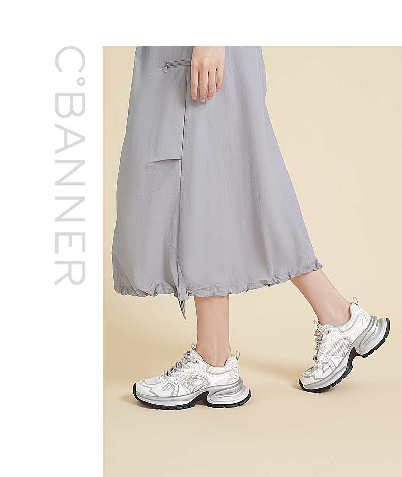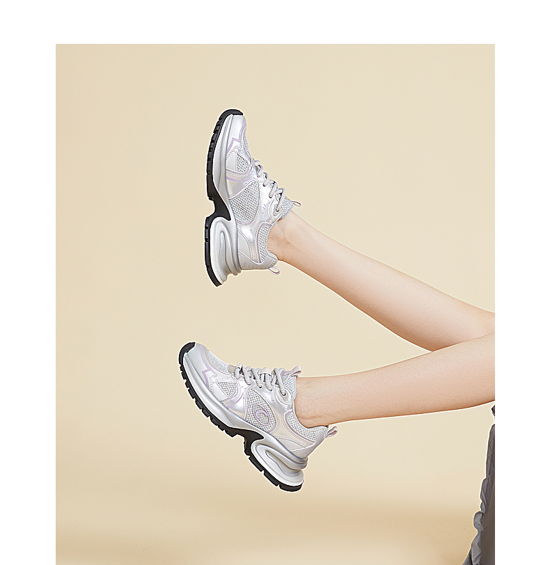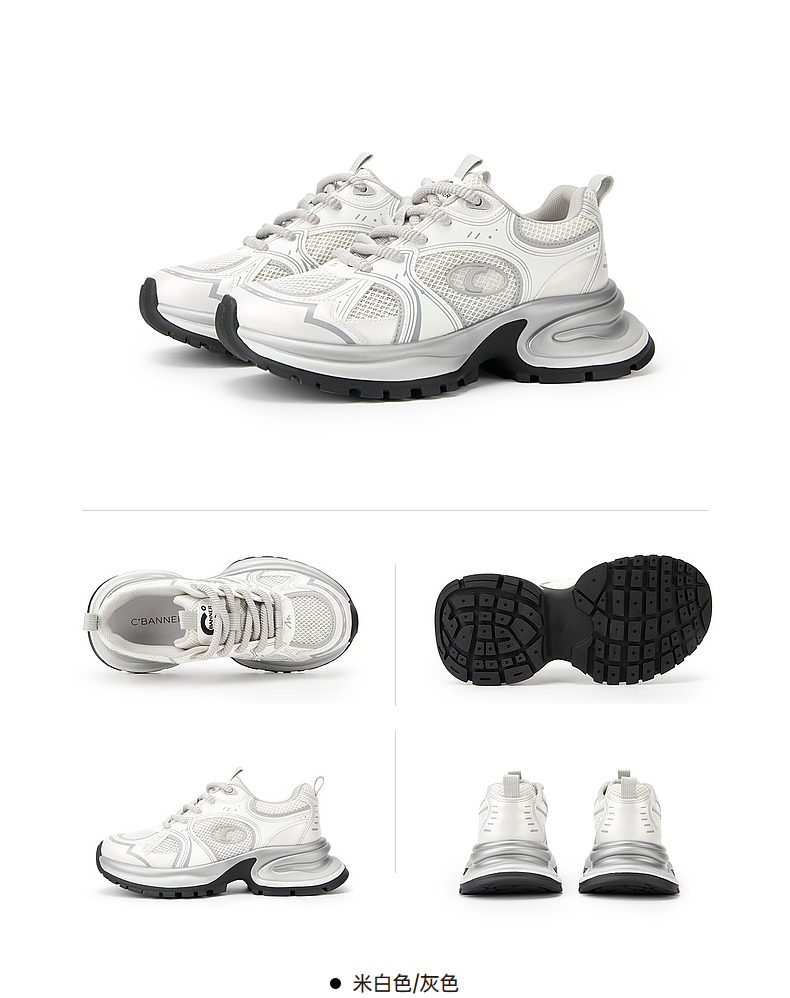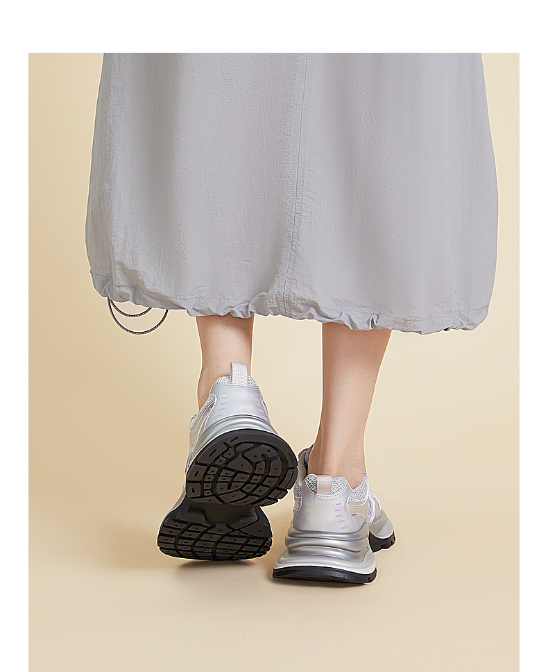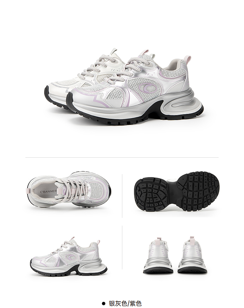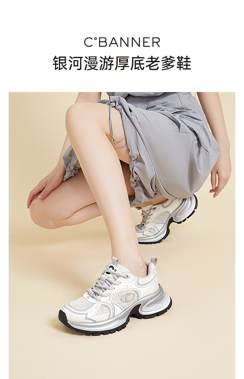 千百度银色老爹鞋女款春夏厚底增高网面时尚运动休闲鞋A24301885