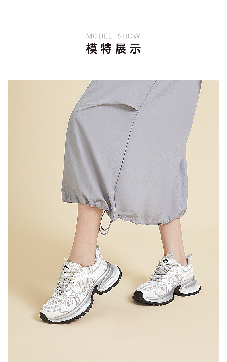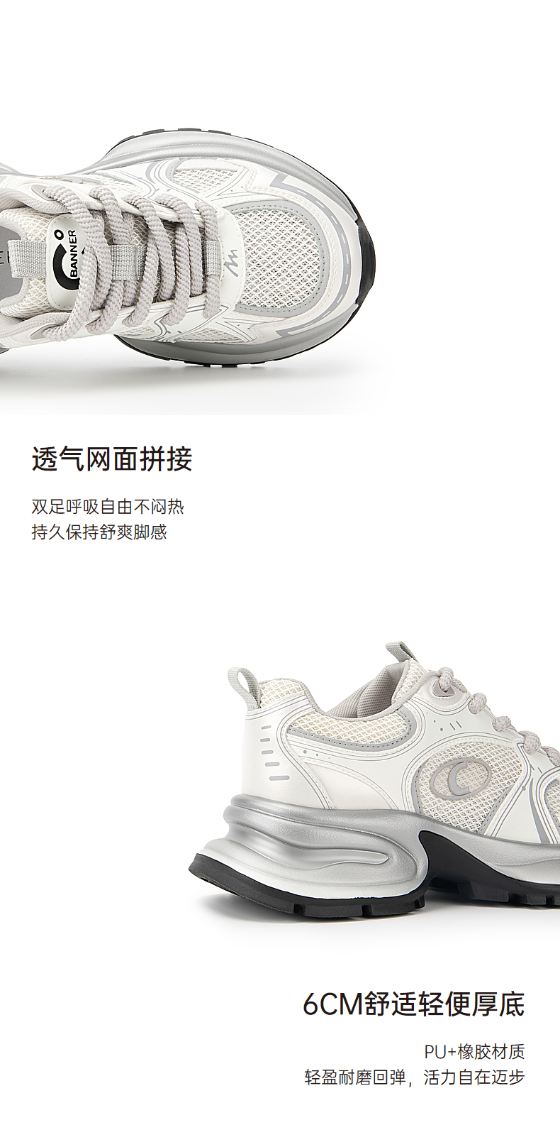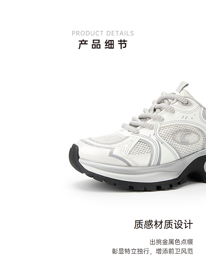千百度厚底老爹鞋女款增高网面鞋时尚运动休闲鞋透气A25118983