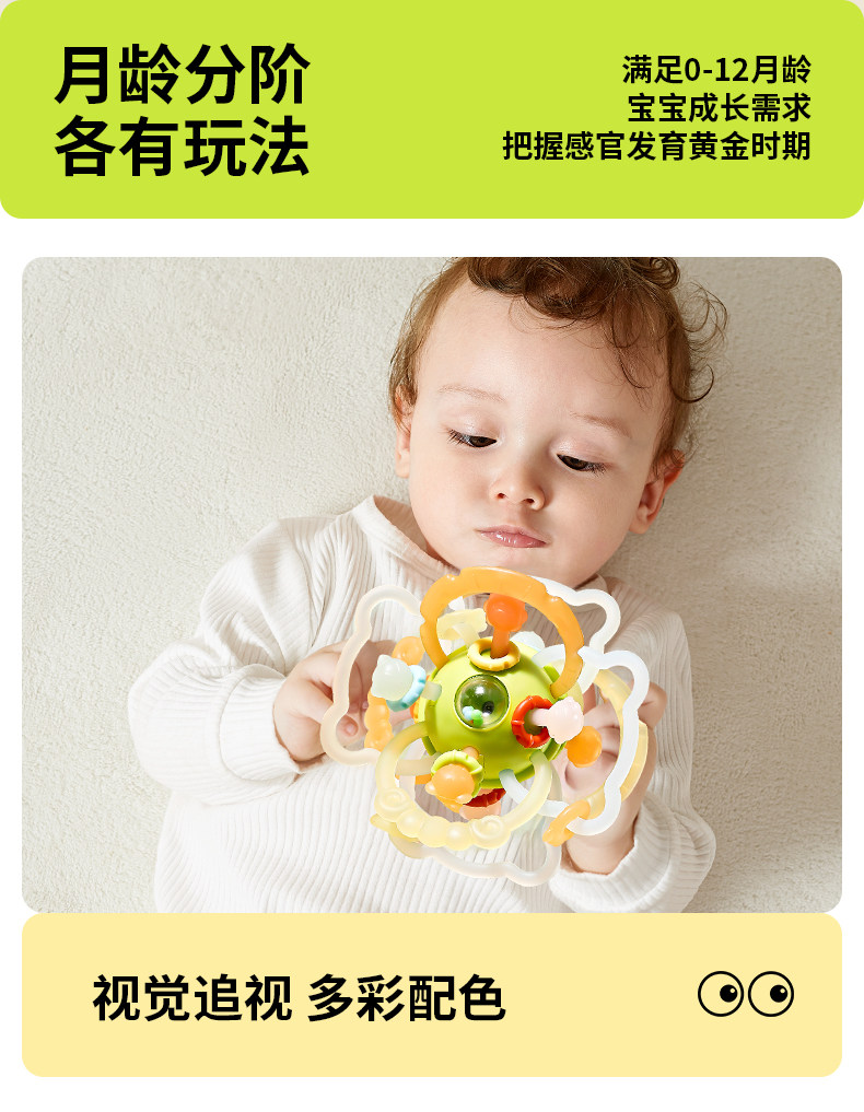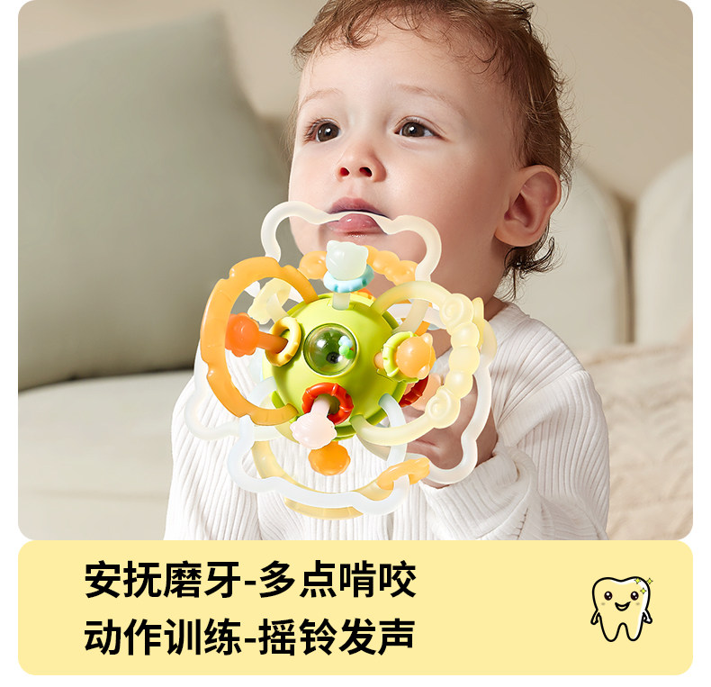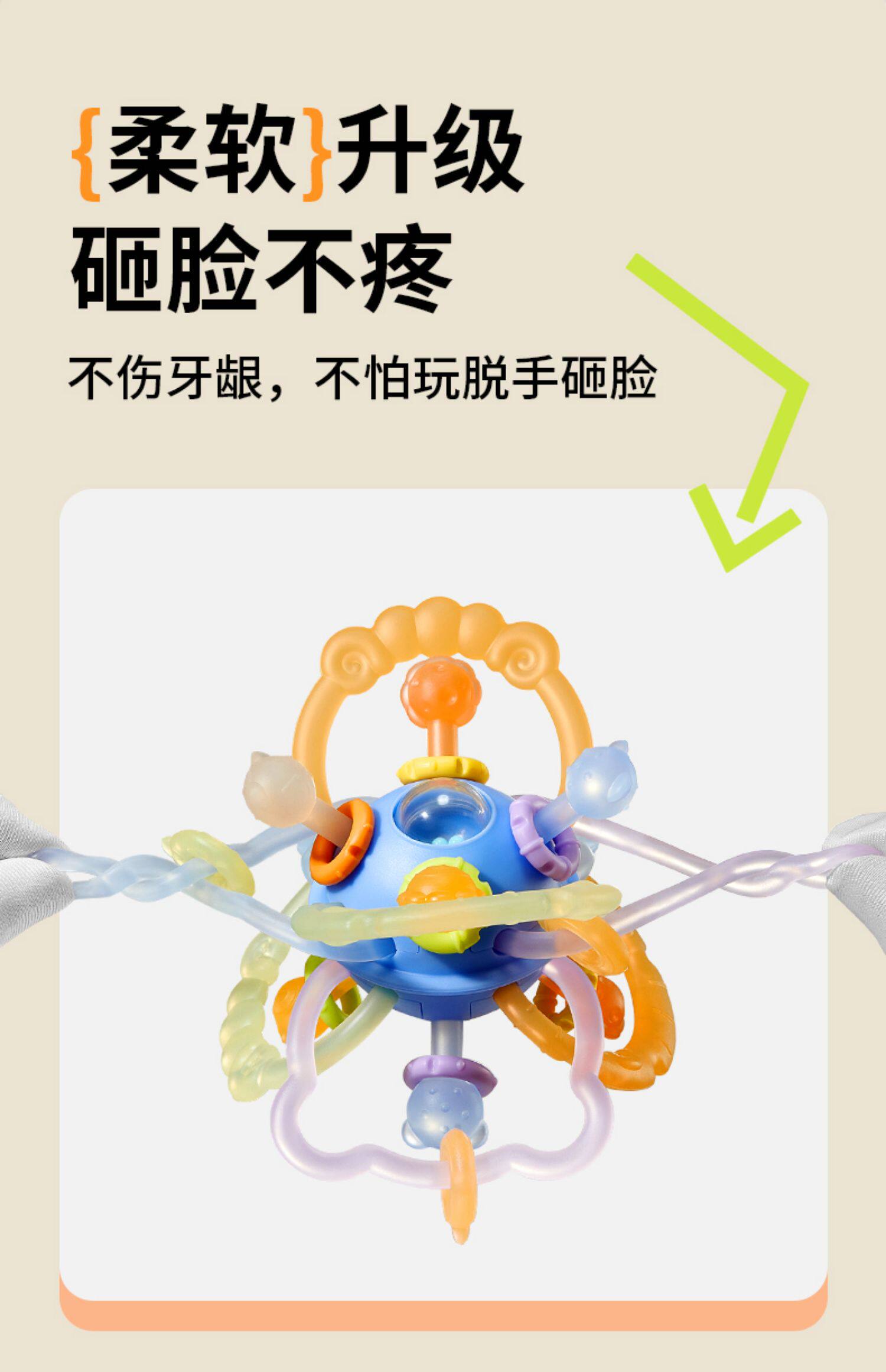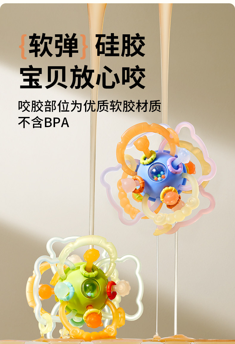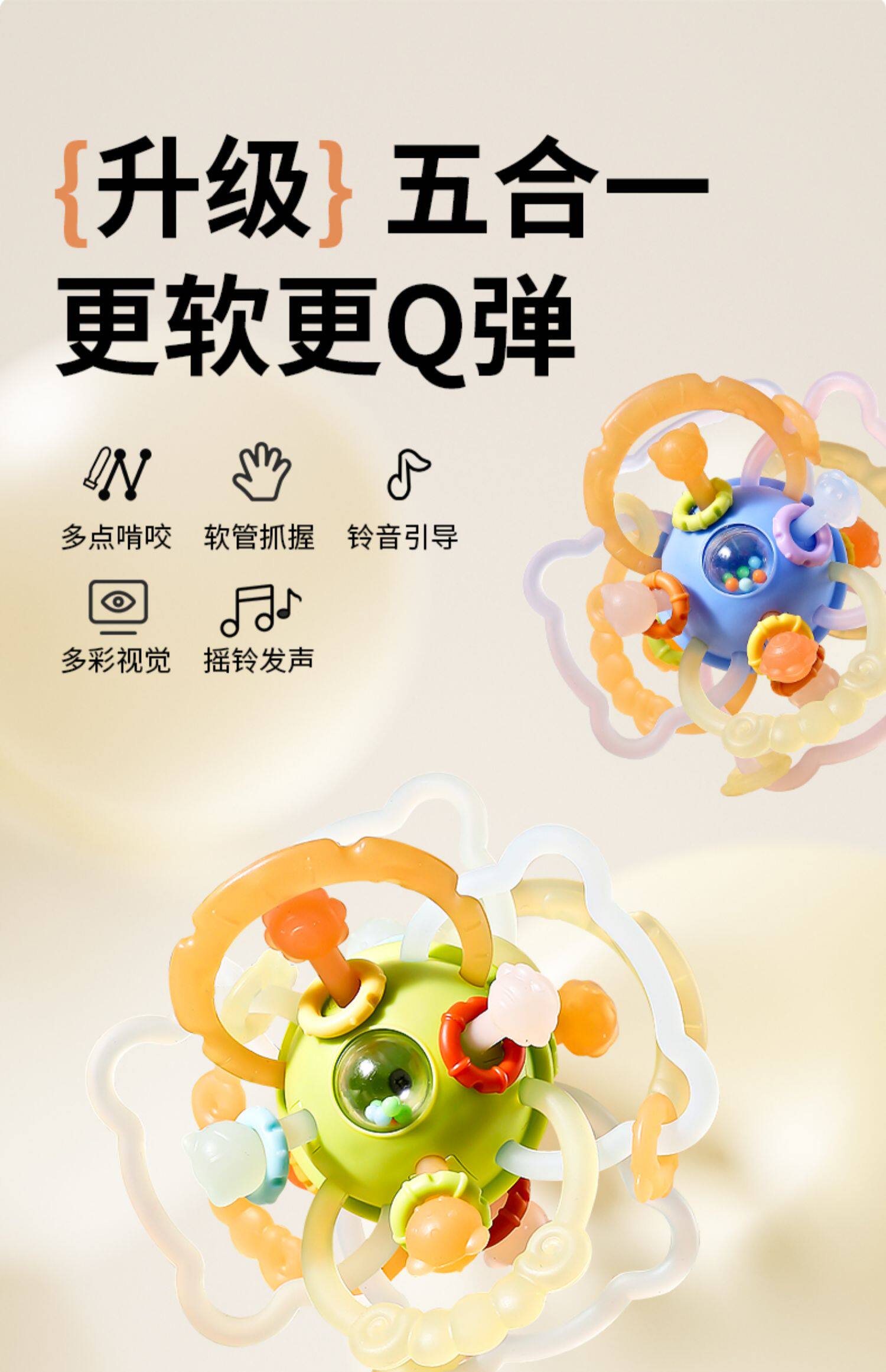 曼哈顿手抓球婴儿硅胶可啃咬牙胶小月龄幼儿宝宝玩具0到6个月以上