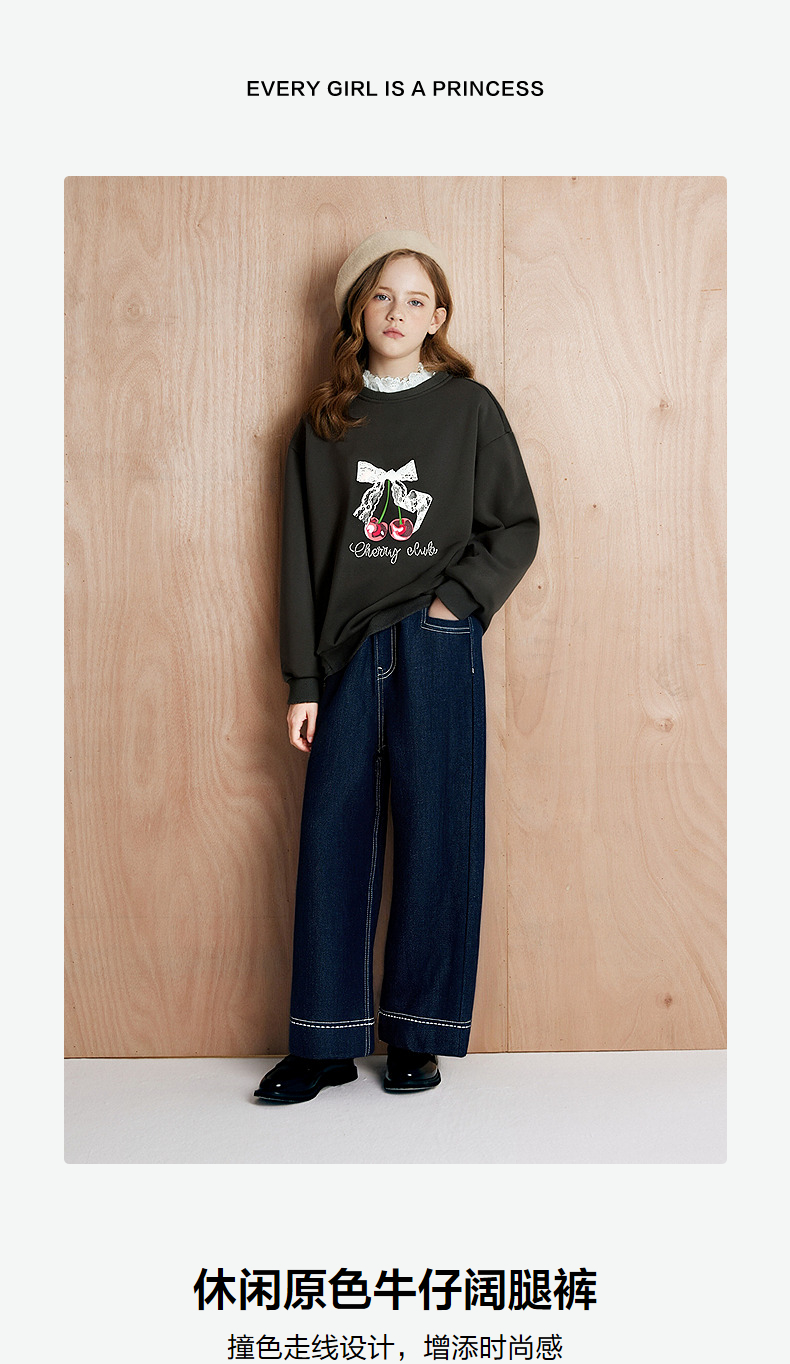 笛莎Deesha 童装女童裤子2025冬新款女童休闲原色牛仔阔腿裤