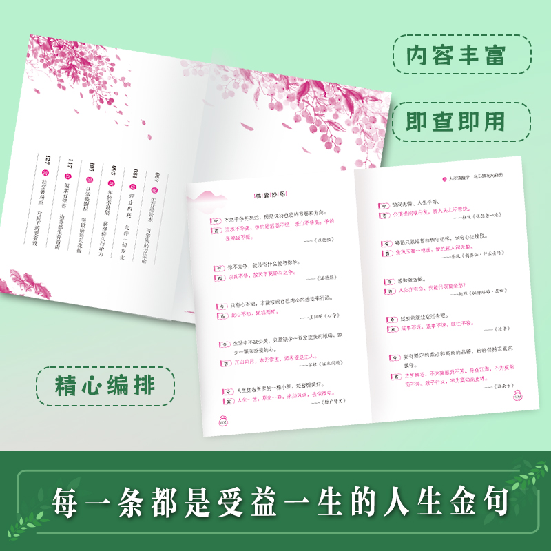 本书是贯通古今的金句宝典,以新视角激活传统文化生命力。围绕现代人核心的心态、认知、生活等十大生存维度,搭建古今对话桥梁。书中金句凝练人生智慧,既能温暖人心、让人通透,又可激励奋进、助少走弯路,还能给予生活启示,更可作写作、演讲等场景的工具书。翻开它,可在古人哲思中找答案,于当下共鸣中寻力量。愿这些金句成为生活解药,助你参透人生、从容处世,在复杂世界活得清醒通透,让千年文明照亮现实。