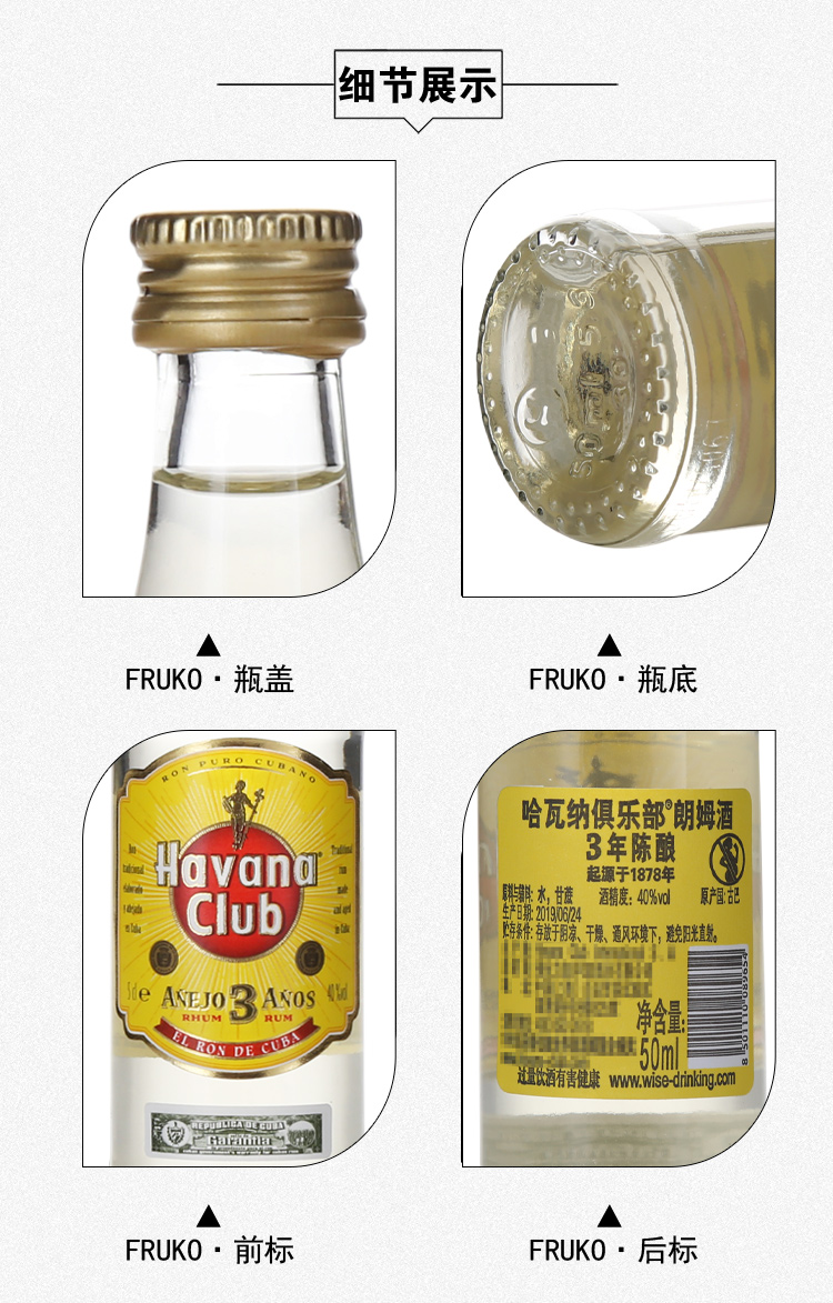 哈瓦纳俱乐部朗姆酒3年陈酿50ml/012677 感受热带风情DIY一杯莫吉托