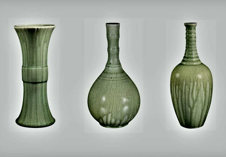 翡翠青瓷烧造程序多,工艺相当复杂,其作品多是尽人力托天命。这是一种豁达的态度,也是一种艺术的理念。柴烧陶瓷艺术作品自然形成的落灰釉,以及层次丰富的釉面色彩和自然天成的火痕,使同窑成品无一重复。可以说,翡翠青瓷迷人的地方就在于它的偶发性与随机性。当作品呈现在眼前时总会让人有出乎意外的收获、惊喜。也许正是这种不确定性,更加突显了翡翠青瓷的魅力所在。