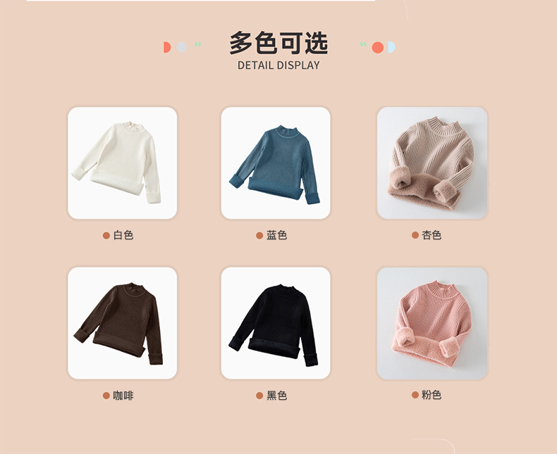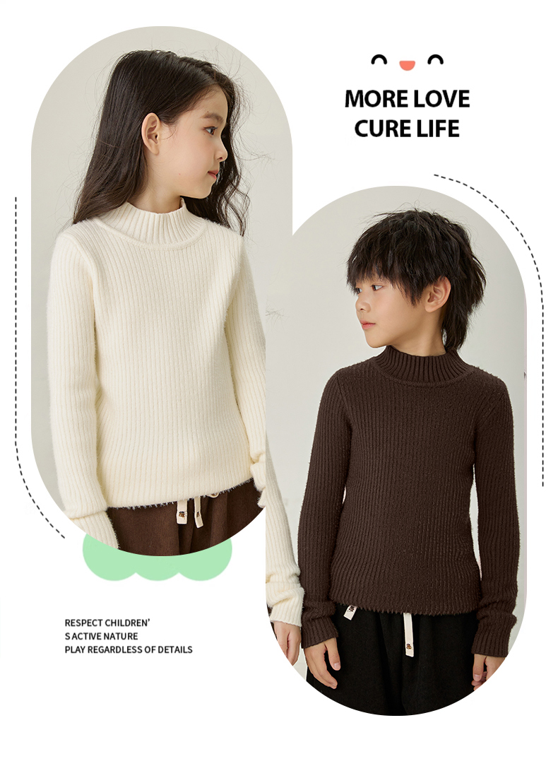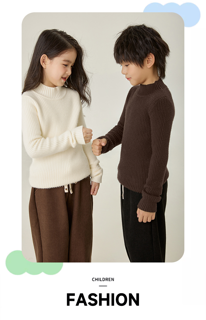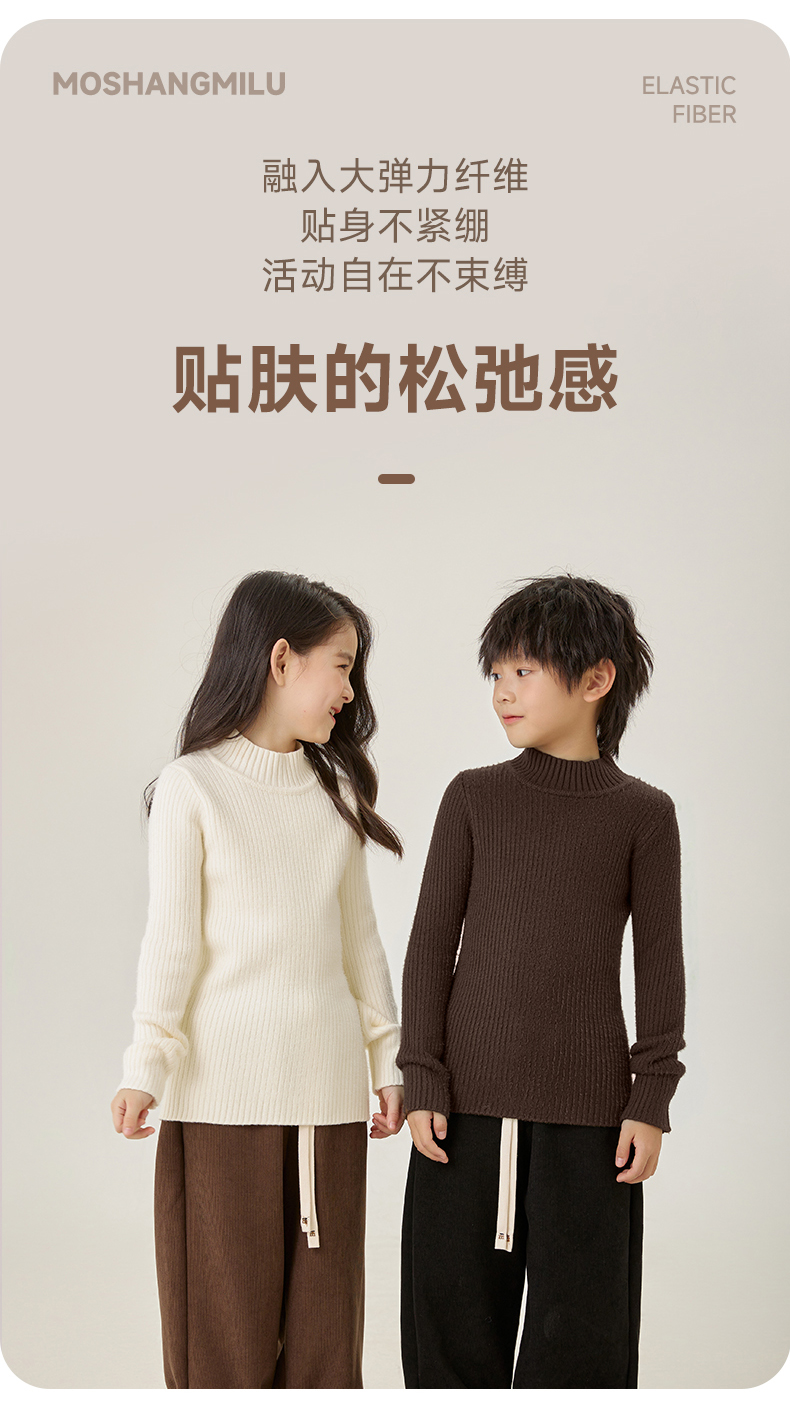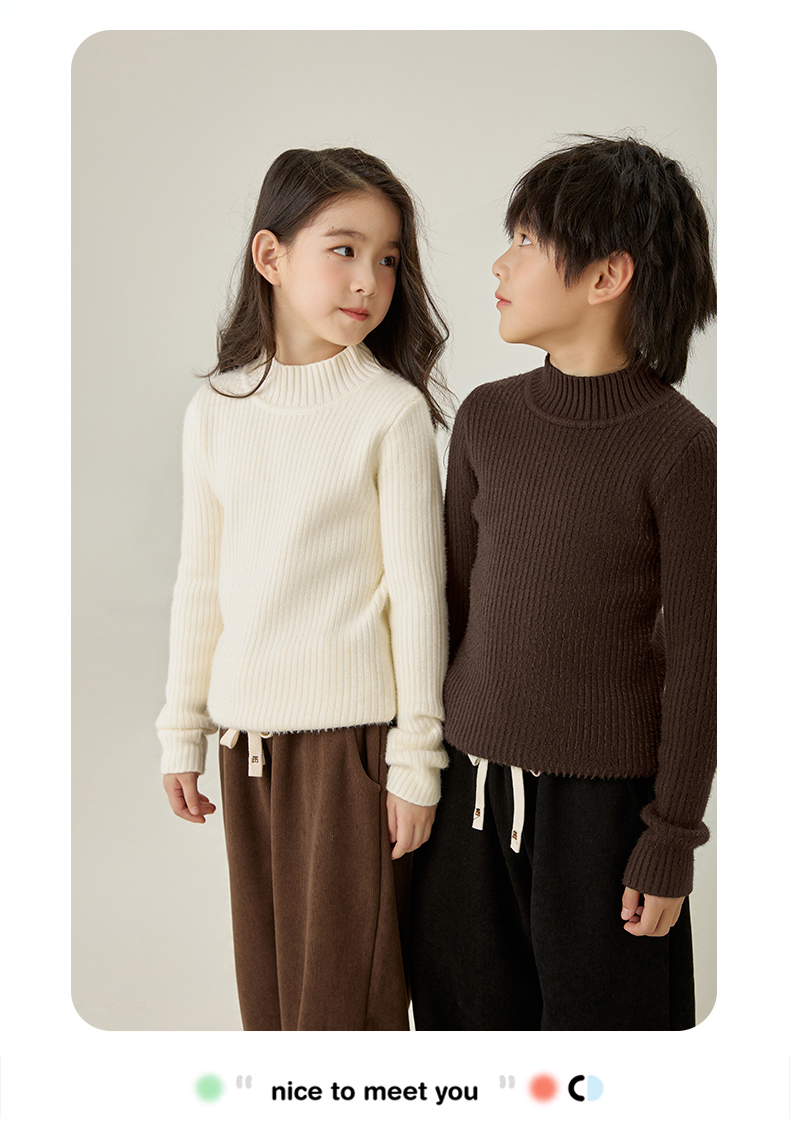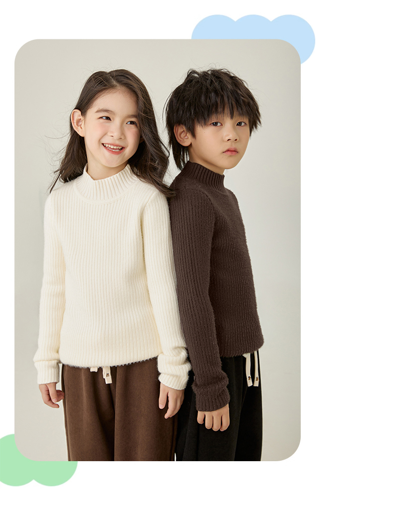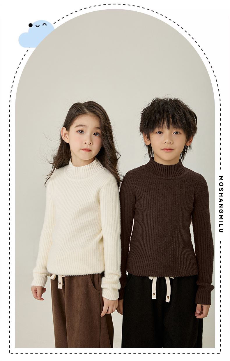 【年终特价,一件过深冬】【A类品质,加绒加厚】MOSHANG MILU秋冬6色儿童一体绒半高领毛衣加厚针织衫秋冬季新款儿童上衣男女保暖毛衣