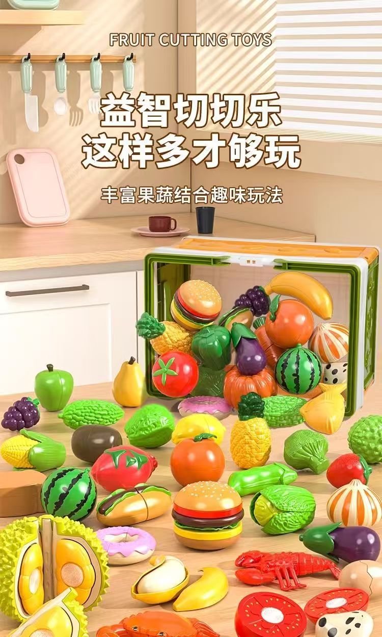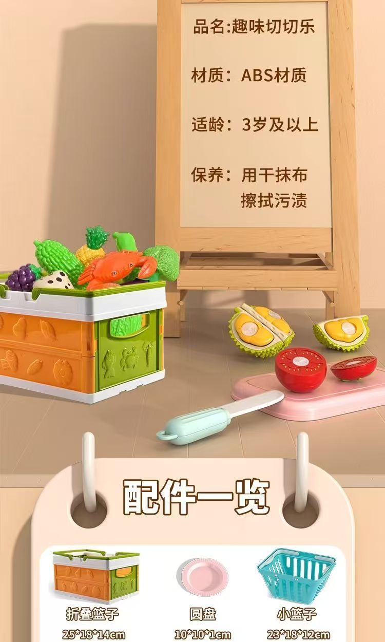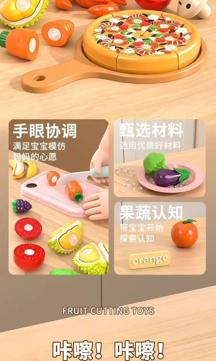 儿童切切乐水果玩具可剥皮仿真果蔬篮子披萨厨房益智