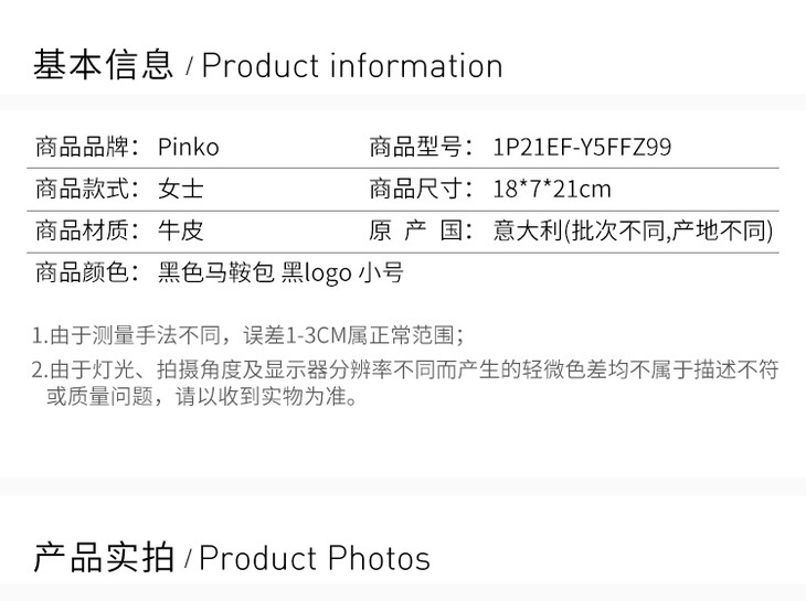 【香港直邮】Pinko 品高 女士Love系列Simply黑色斜挎包 1P21EF-Y5FFZ99