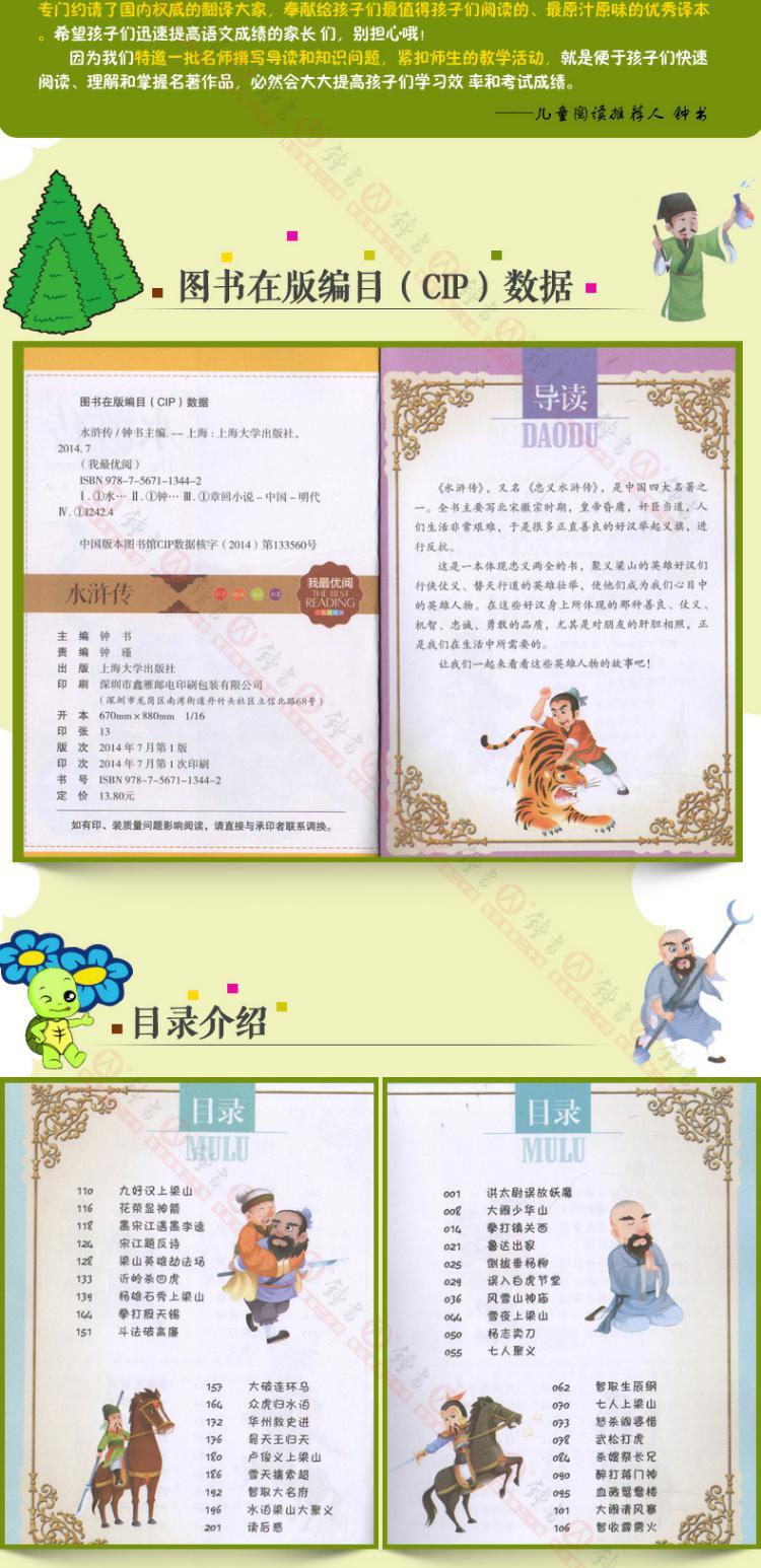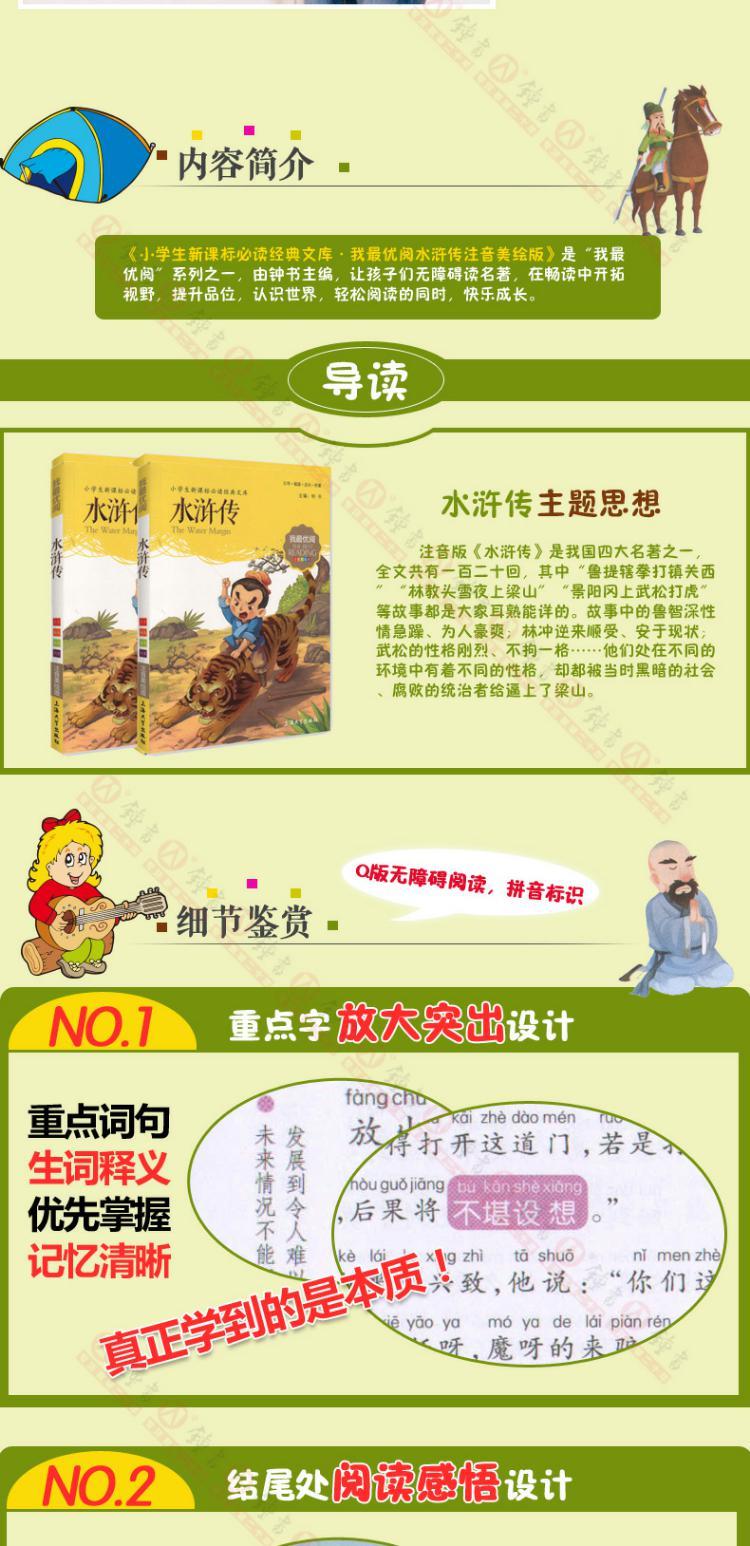 1-3年级适用 注音美绘版-水浒传 钟书正版少儿读物我优阅系列拼音彩图版四大名著水浒传 儿童文学课外读物小学生作文阅读写作能力