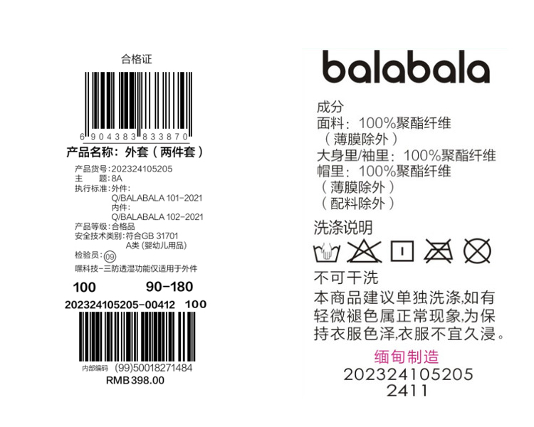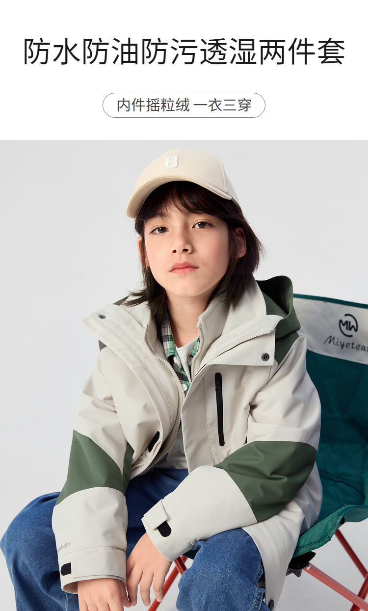 巴拉巴拉童装男童两件套外套女童春秋装防水防油防污透湿上衣拼色