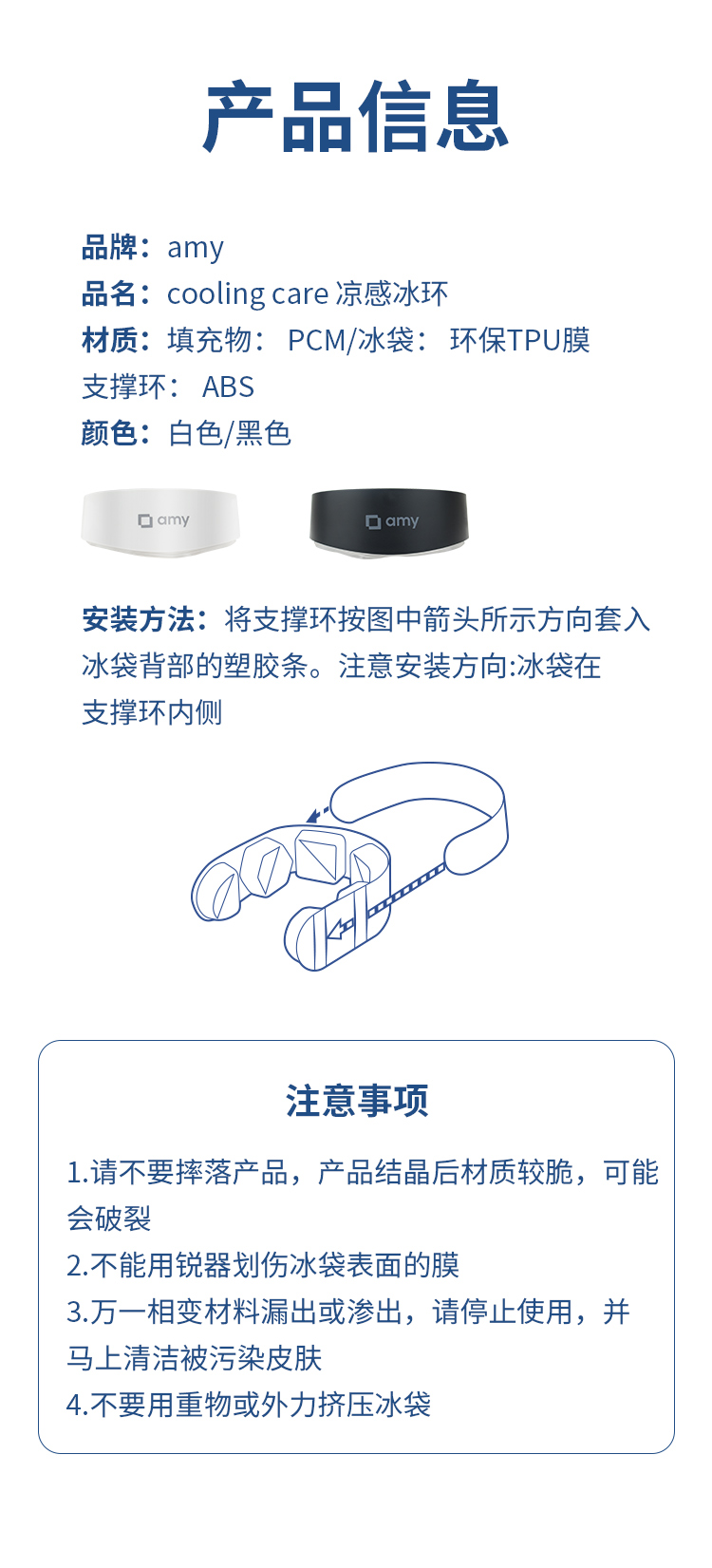 【材质】填充物:PCM/冰袋:环保TPU膜/ 支撑环ABS