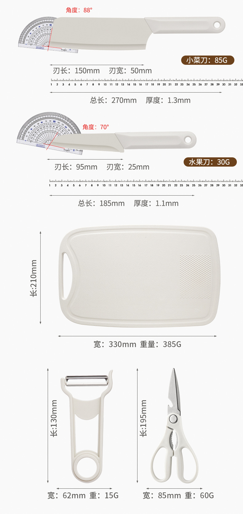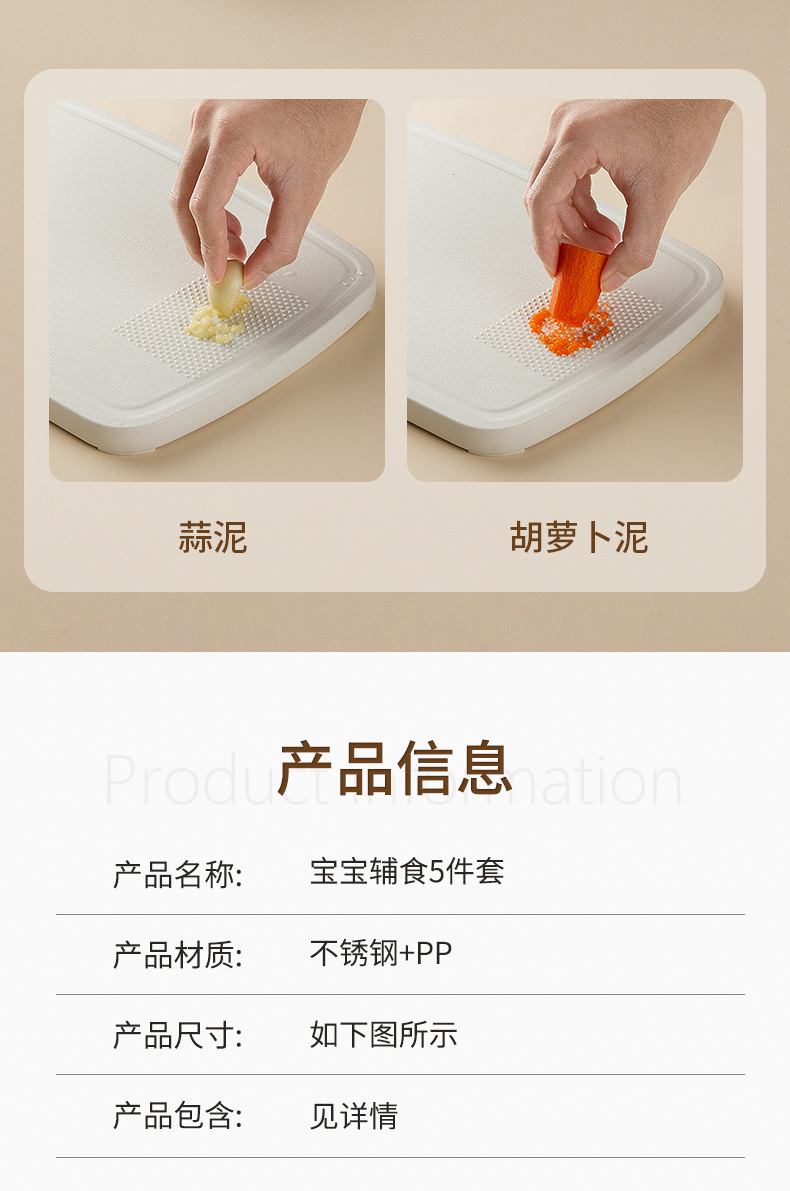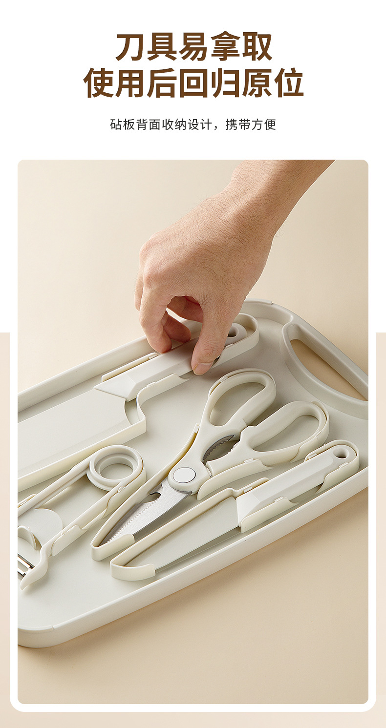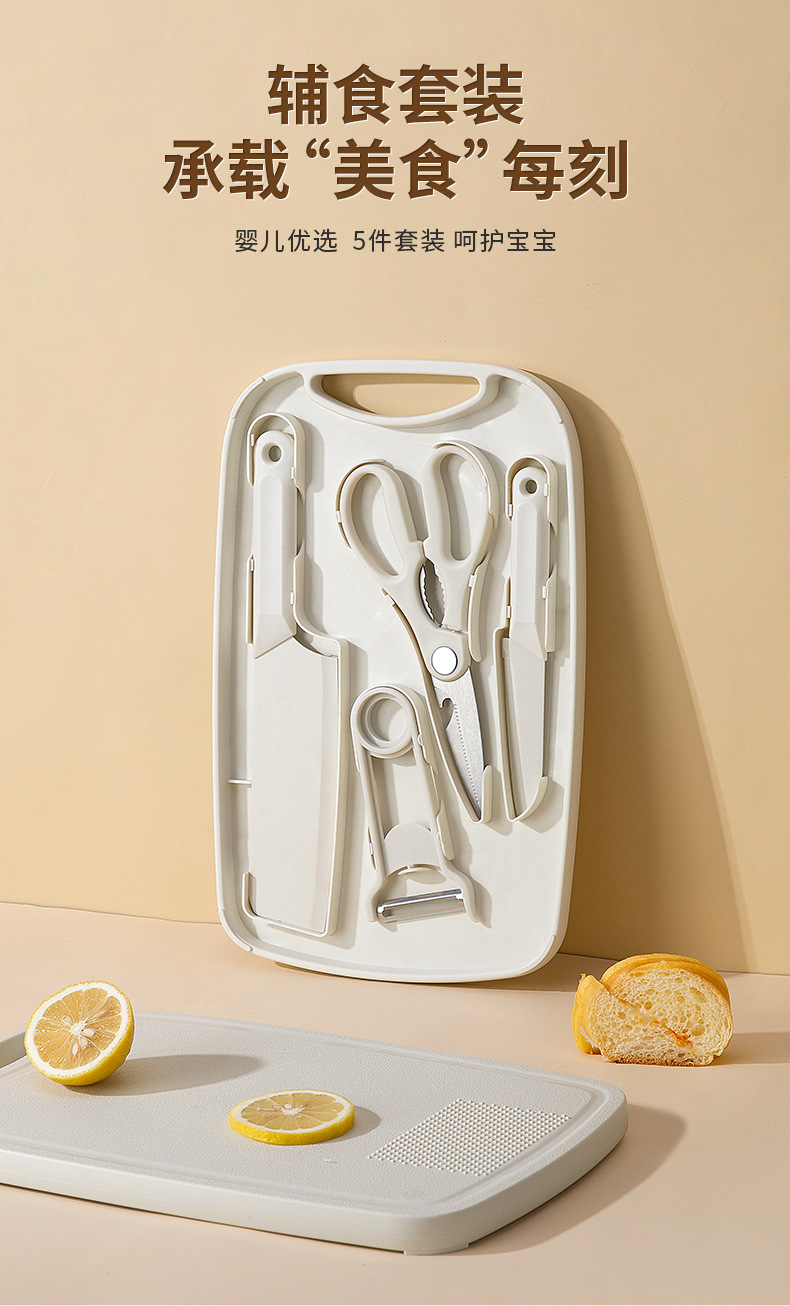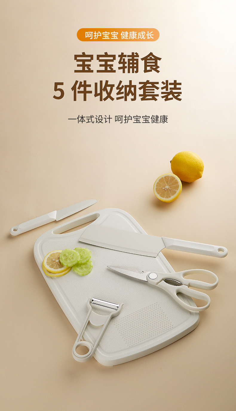【宝宝辅食5件套!一体设计】挂孔设计,方便收纳,菜板收纳刀具套装锋利菜刀家用厨房不锈钢宝宝辅食宿舍切片刀。rb