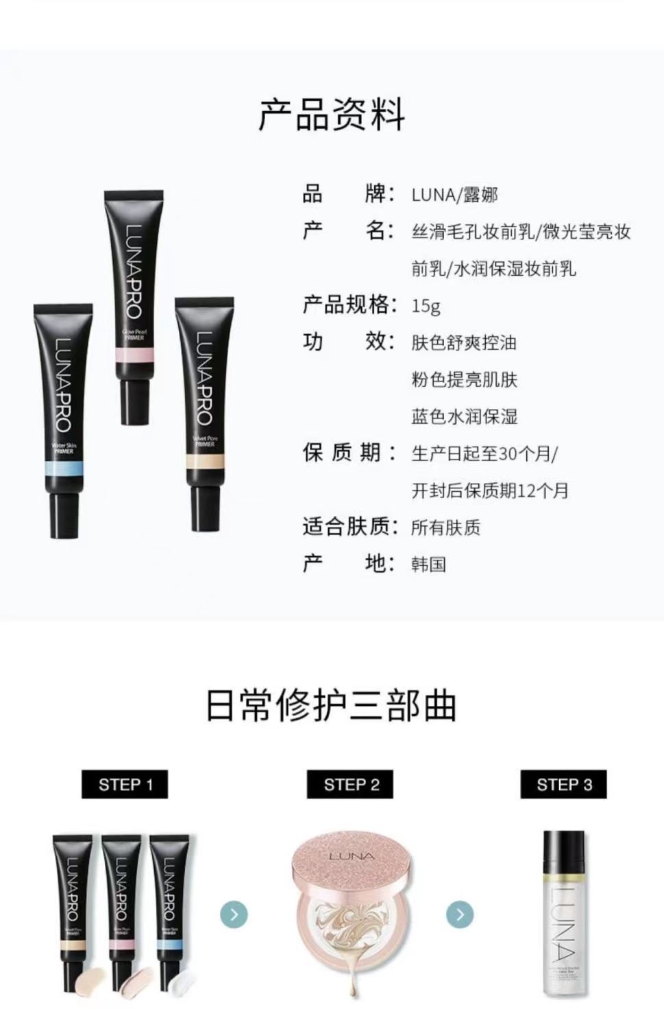 【爆款超低价预售 急单慎拍】韩国露娜LUNA PRO控油毛孔平滑光泽提亮水润保湿隔离妆前乳15g/支