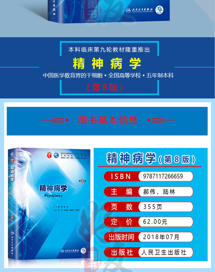 精神病学第8版人卫版第八版 郝伟陆林第九版本科临床西医教材 人民卫生出版社9787117266659