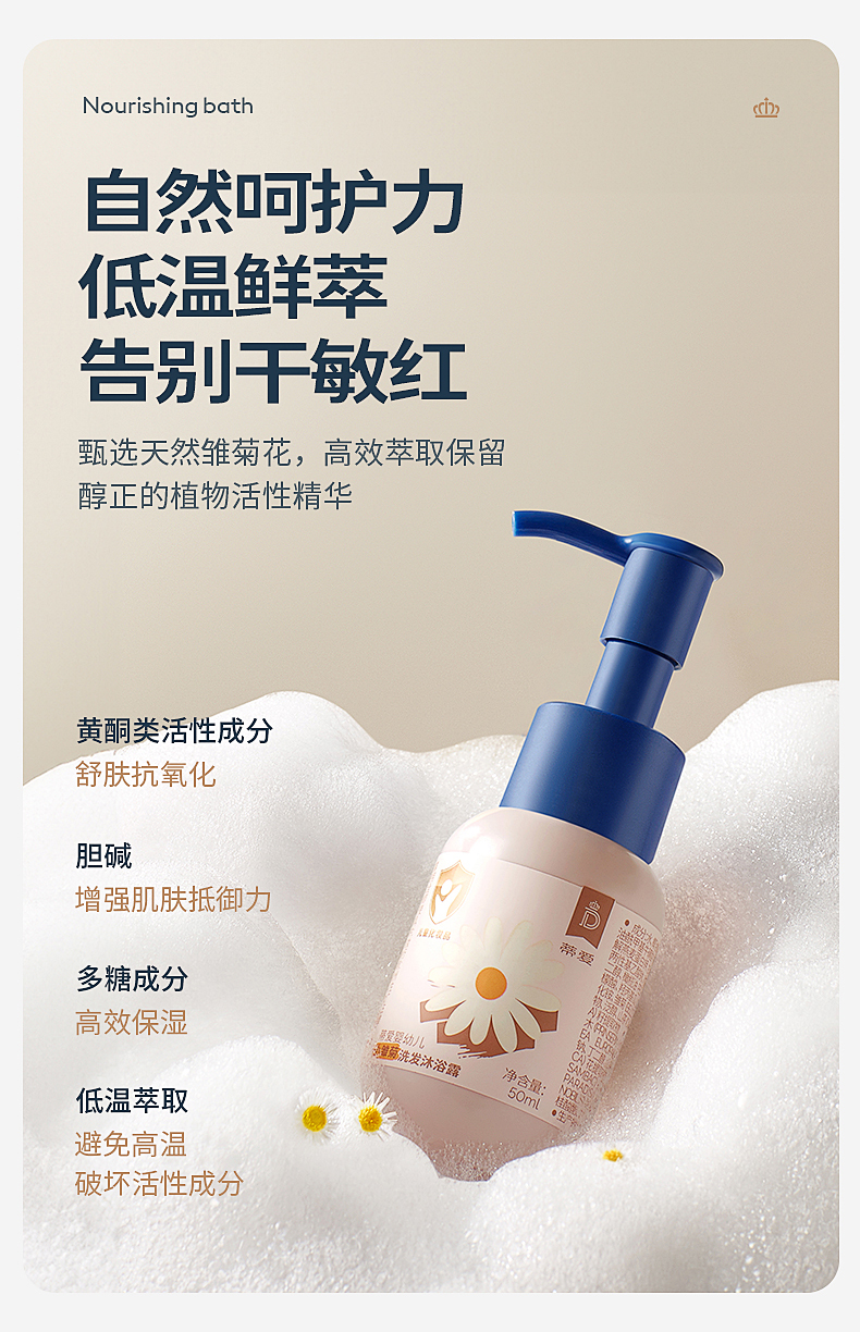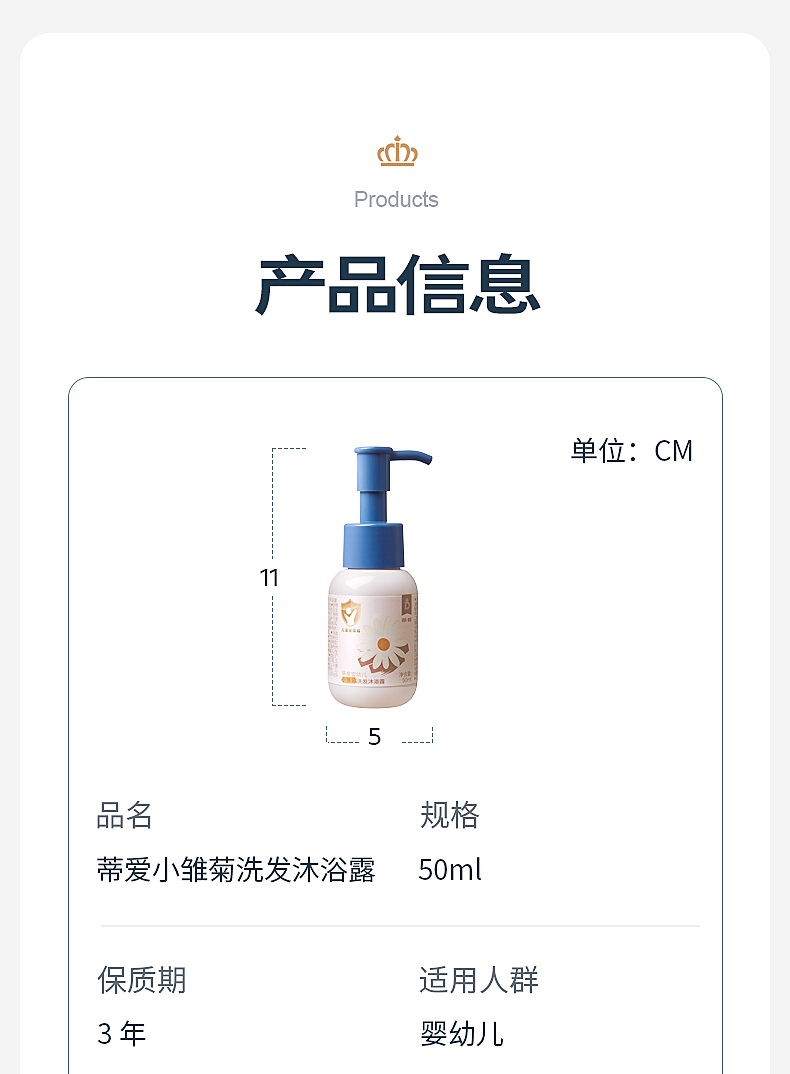蒂爱儿童沐浴露宝宝洗发水婴幼儿洗头洗护新生的儿洗发沐浴二合一50ml*5