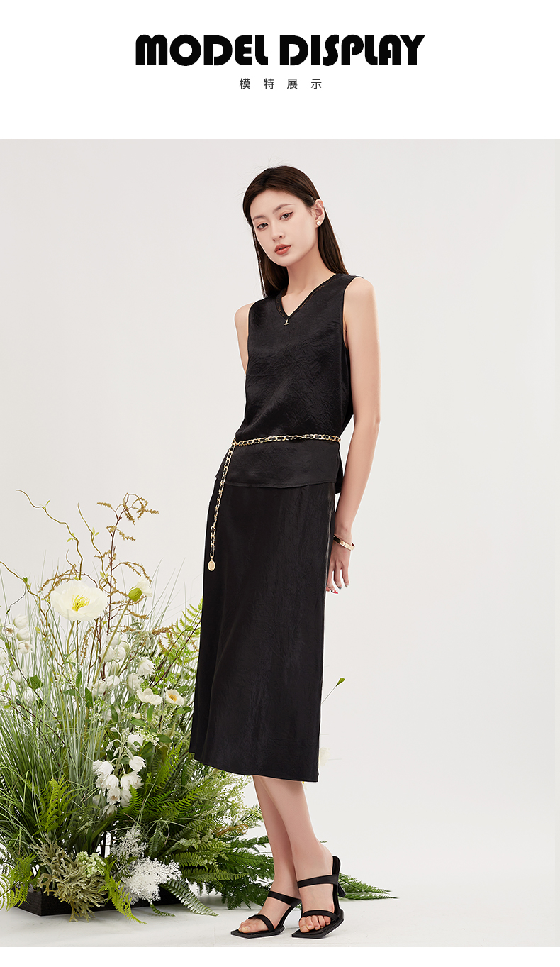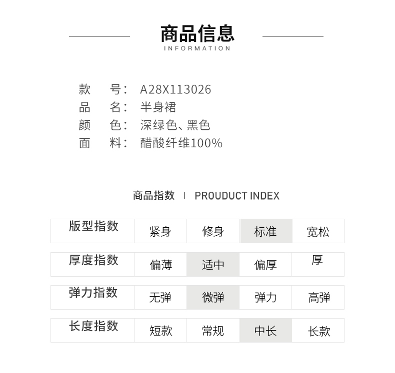 【商场同款】阿菁娜醋酸纤维优雅时尚百搭半身裙A28X113026