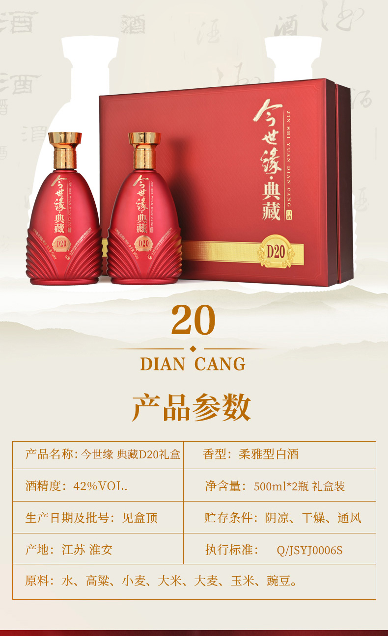 【酒厂直营】今世缘 浓香型 白酒 42度典藏D20礼盒