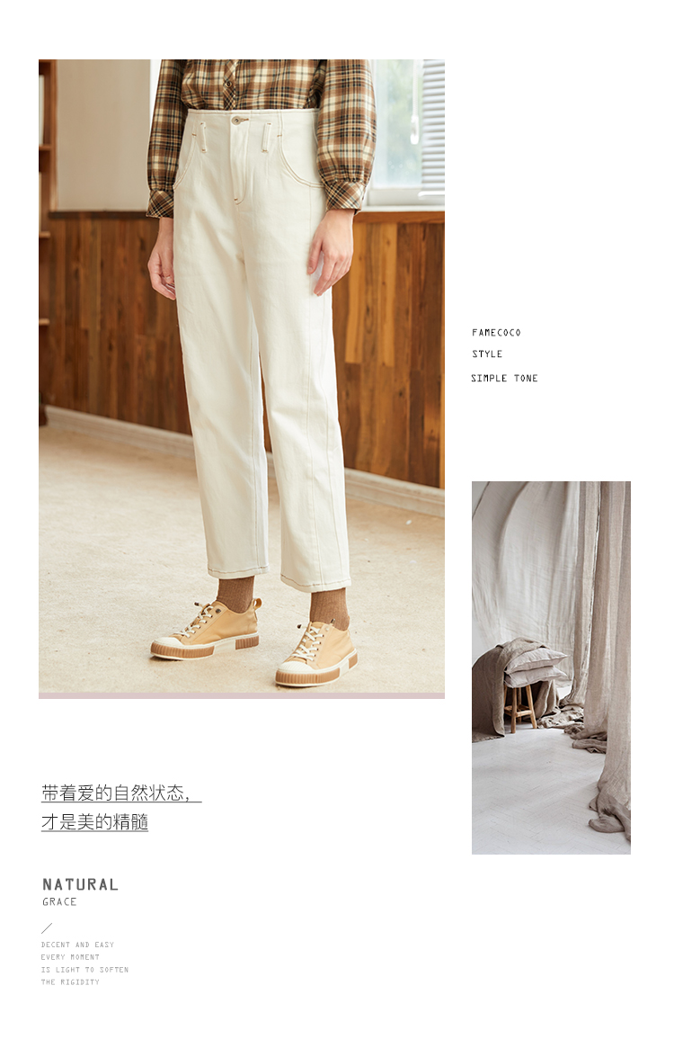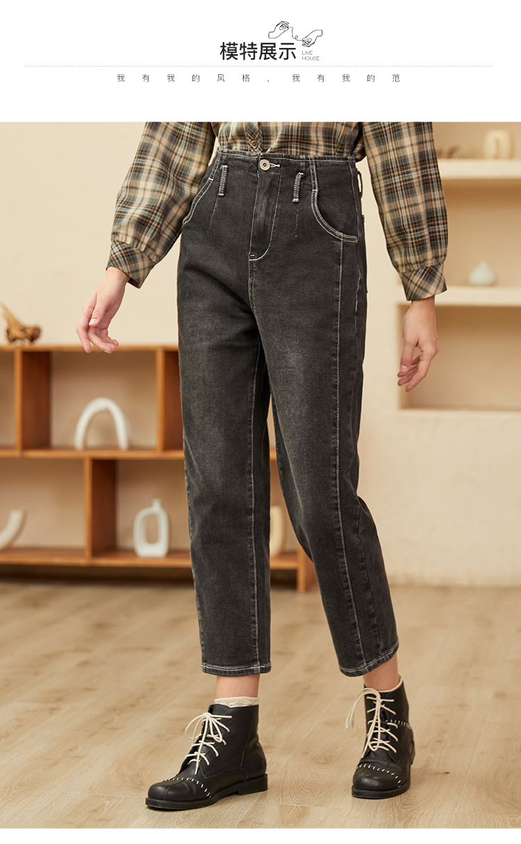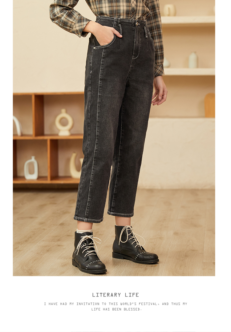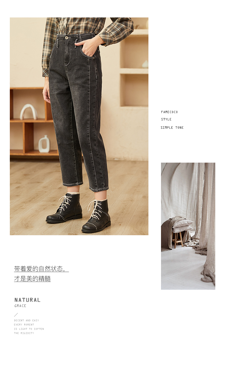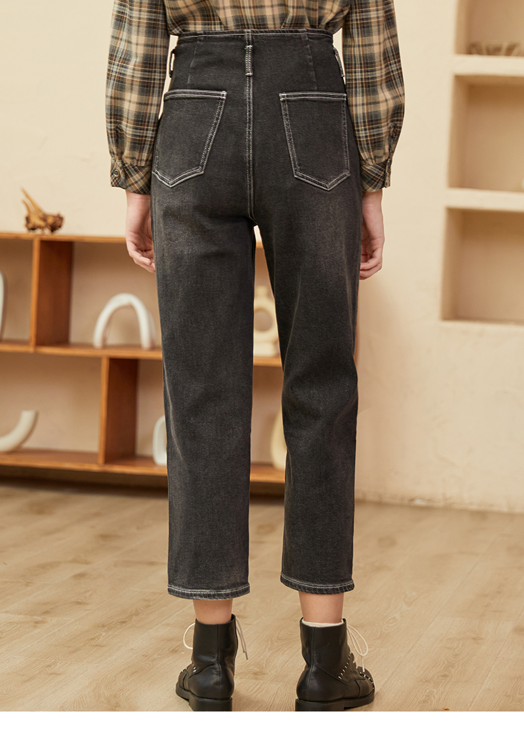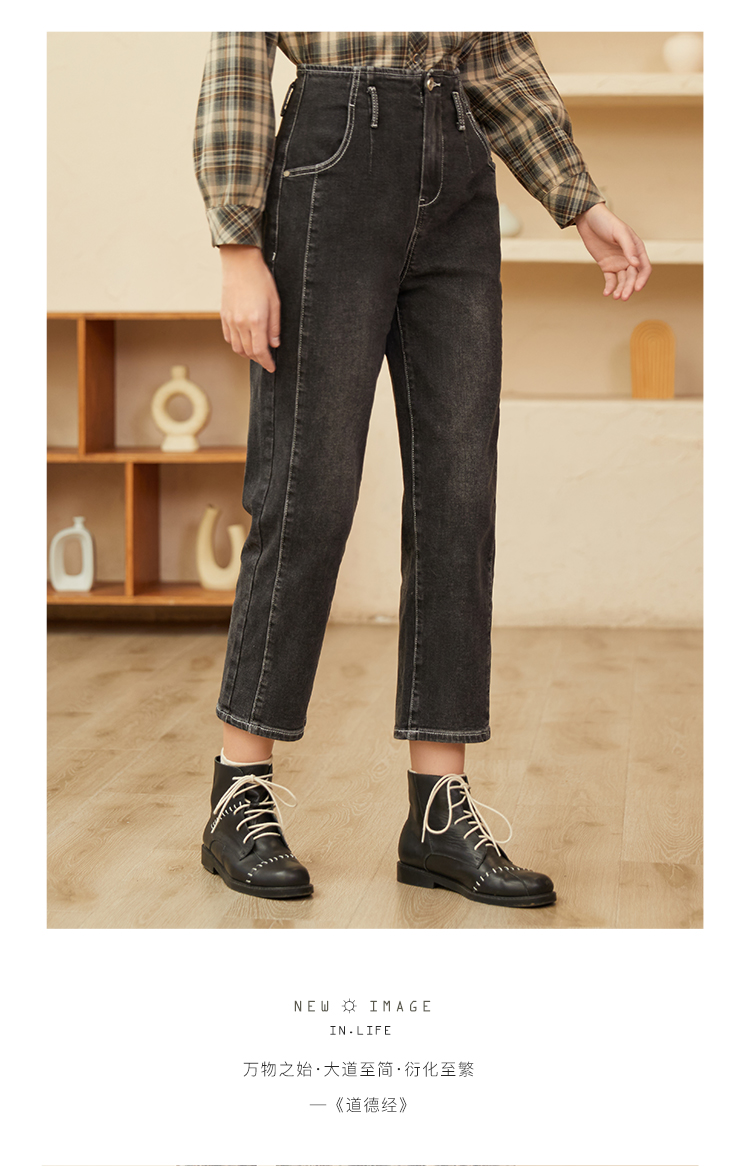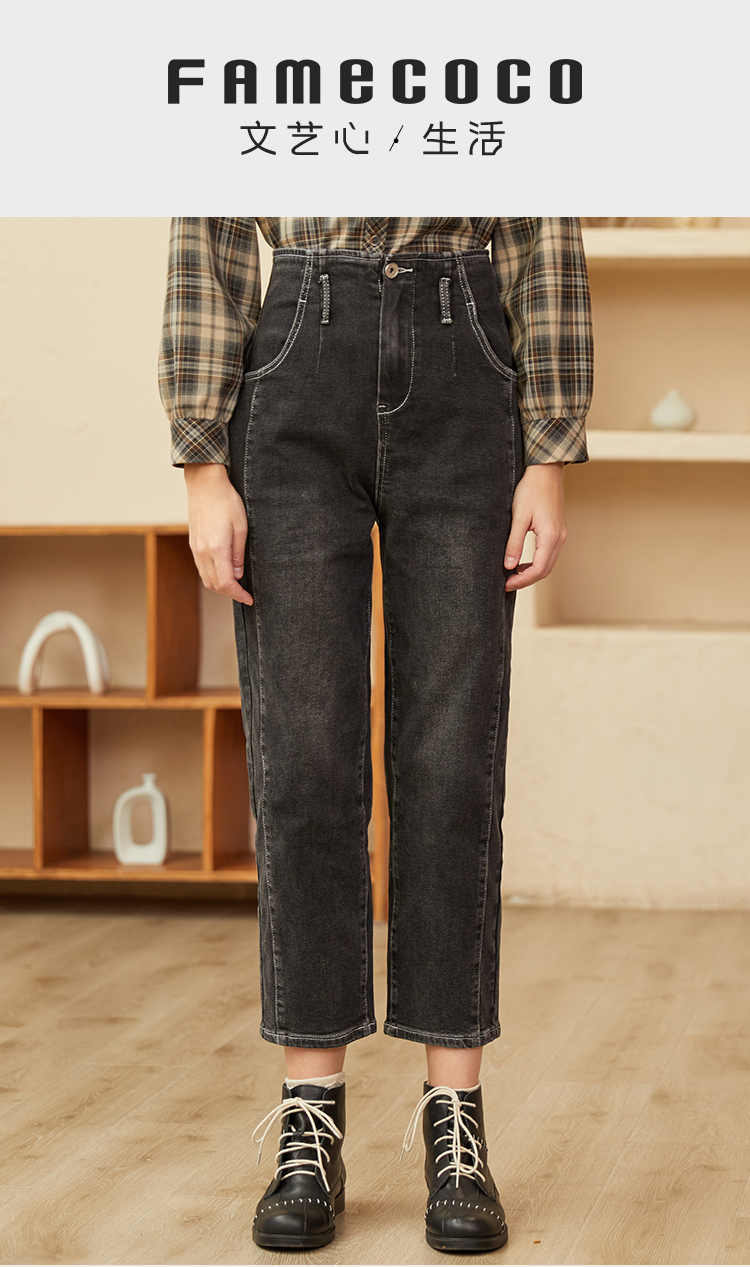 Famecoco范可儿黑色牛仔裤女款显瘦显高纯色微弹中腰裤子F228GA005