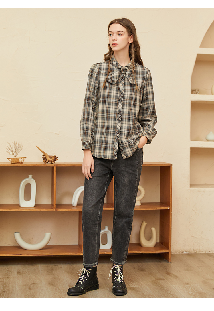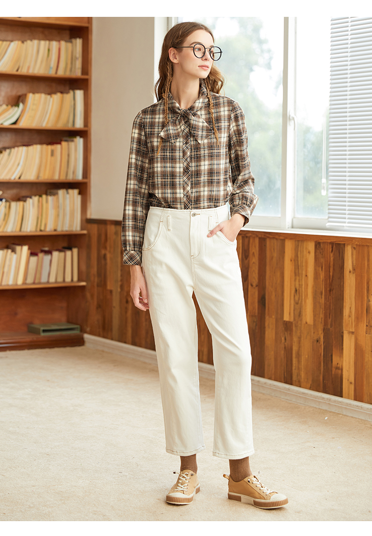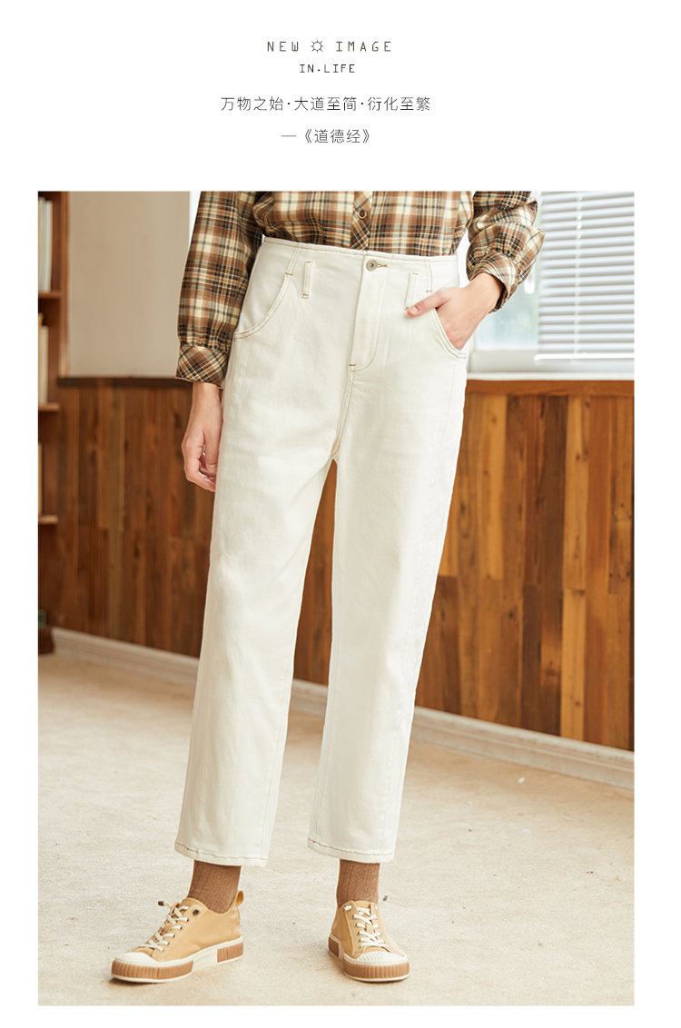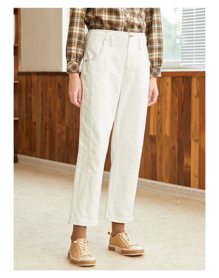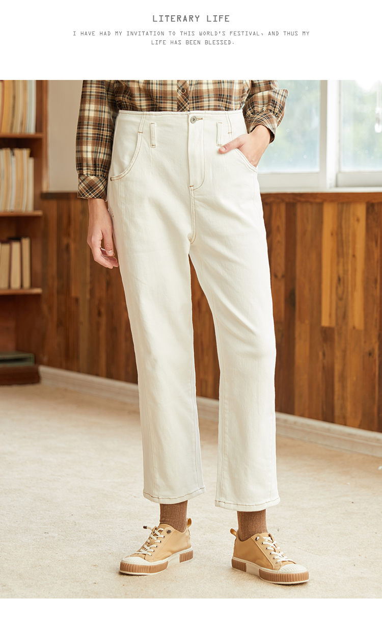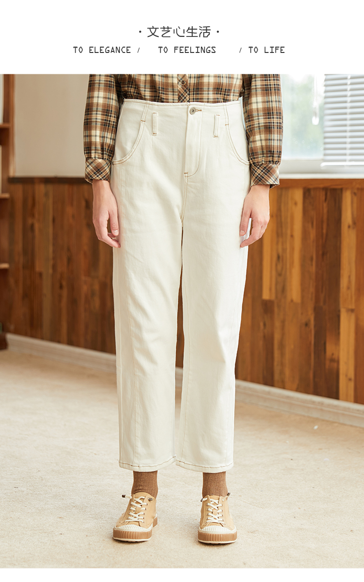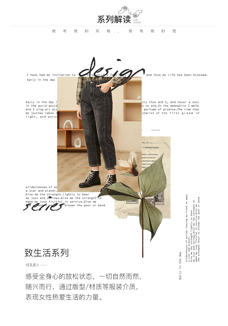 Famecoco范可儿黑色牛仔裤女款显瘦显高纯色微弹中腰裤子F228GA005