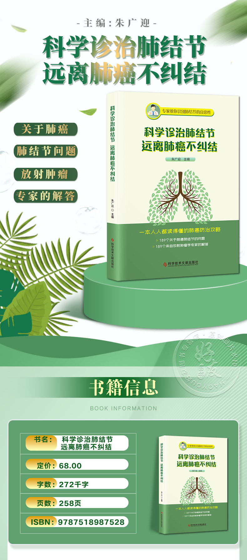 科学诊治肺结节 远离肺癌不纠结 朱广迎 主编 肺癌防治攻略 189个肺癌肺结节的问题及专家解答 科学技术文献出版社 9787518987528