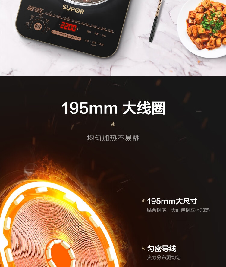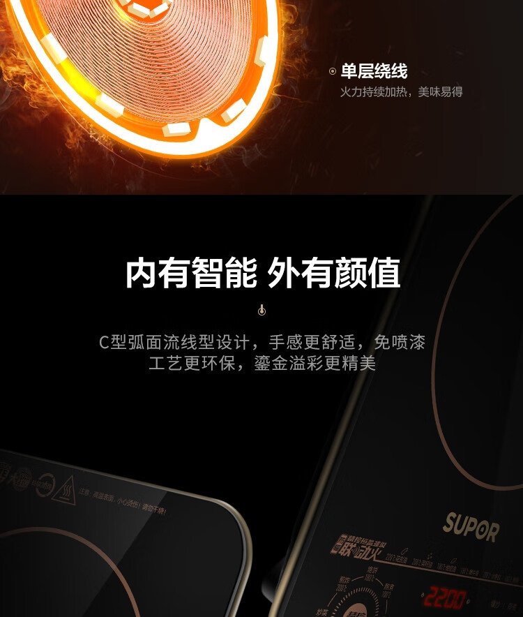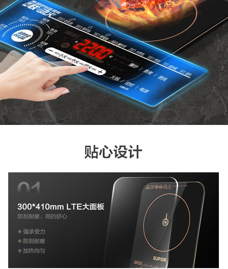 苏泊尔(SUPOR)电磁炉家用触屏多用途炒锅一体套装电磁炉火锅炉大火力电磁灶电池炉精控系列商超同款 C22-ID30