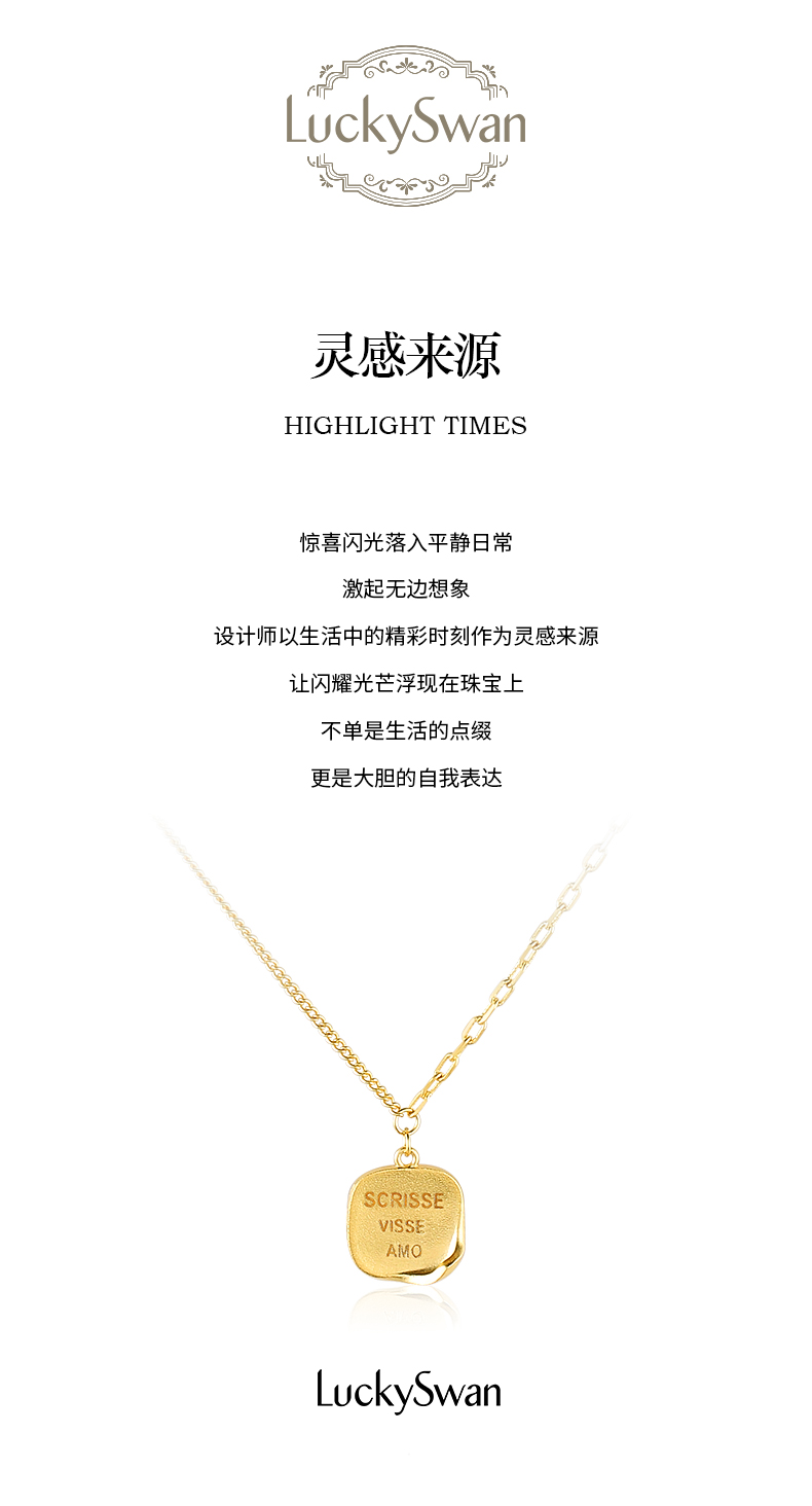 LUCKY SWAN卷边吊牌项链女小众设计感百搭轻奢锁骨链毛衣链手链