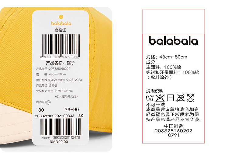 巴拉巴拉balaOne童装儿童帽子女童软檐帽新款全棉舒适精致刺绣萌