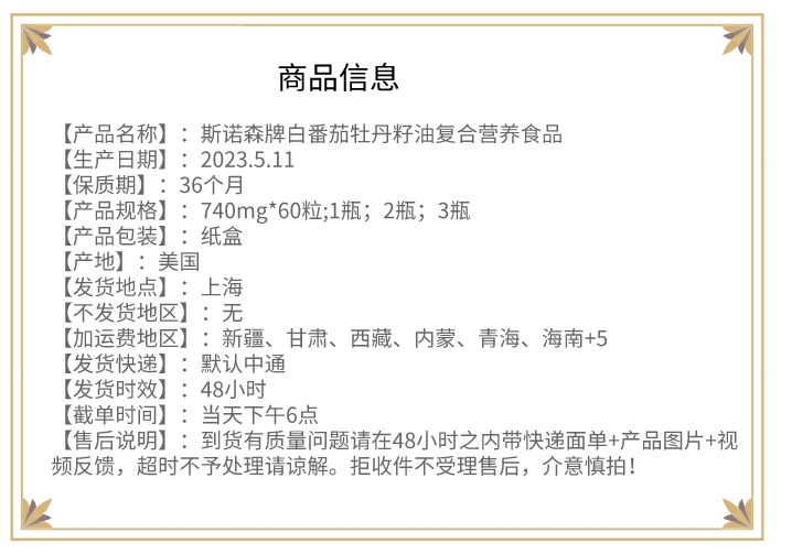 【斯诺森白番茄蔓越莓牡丹籽油】美国原装进口 养宫护巢 “月来“月”好”