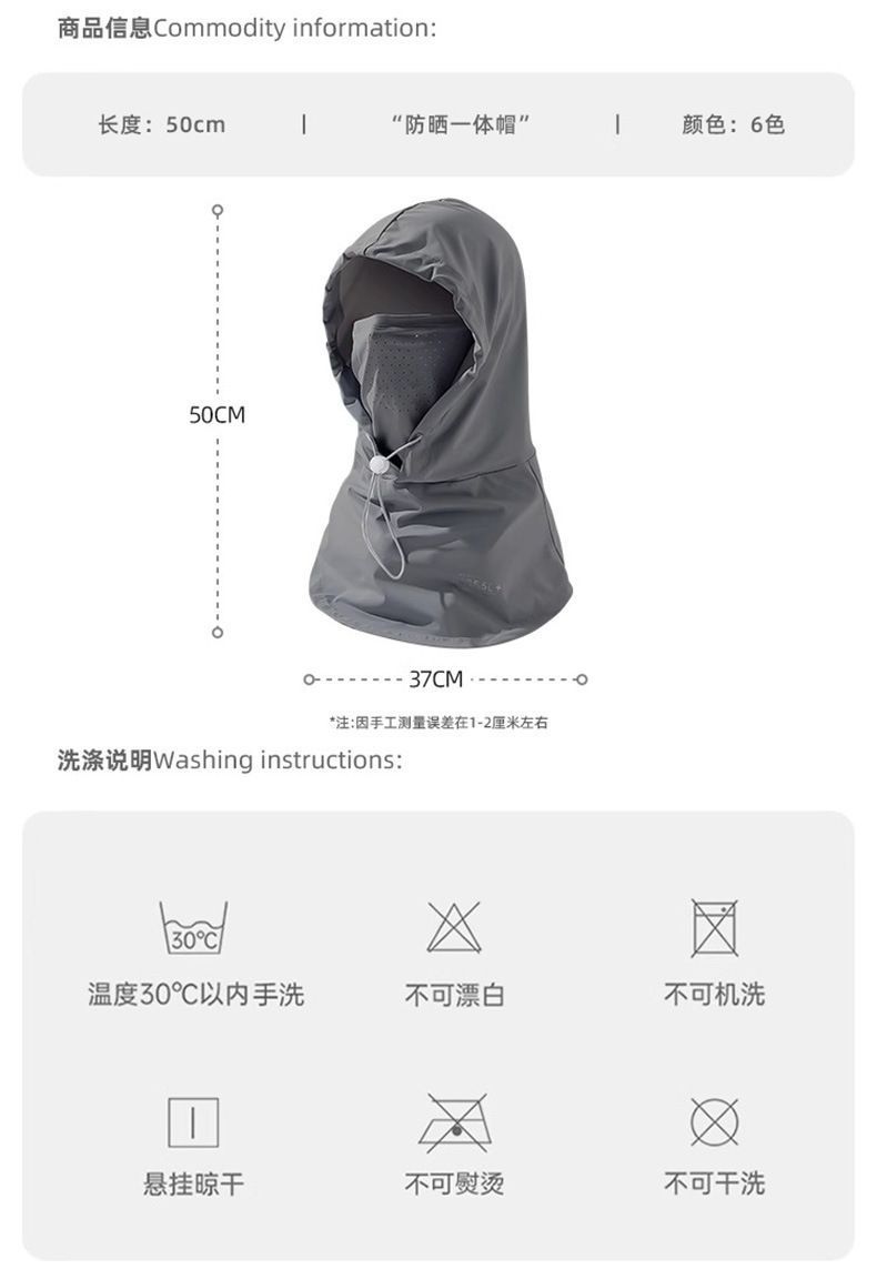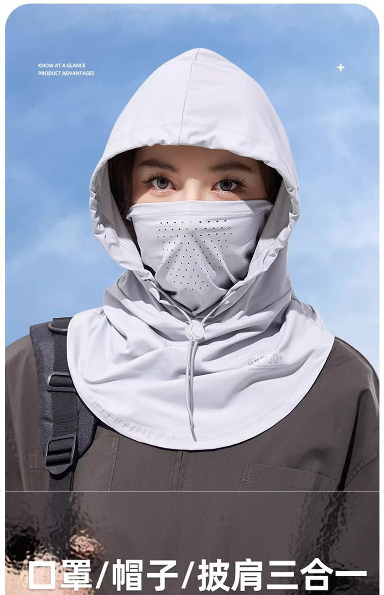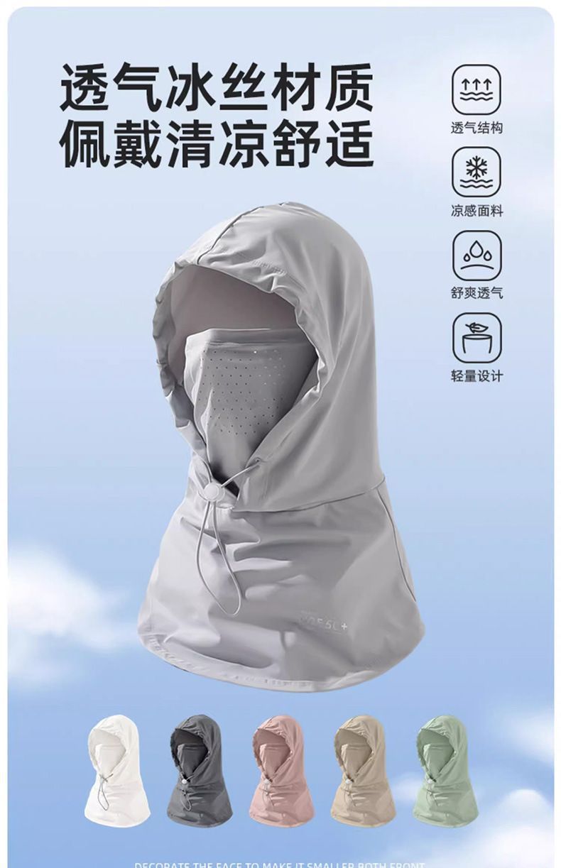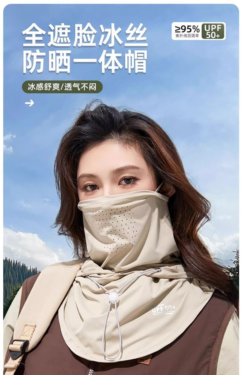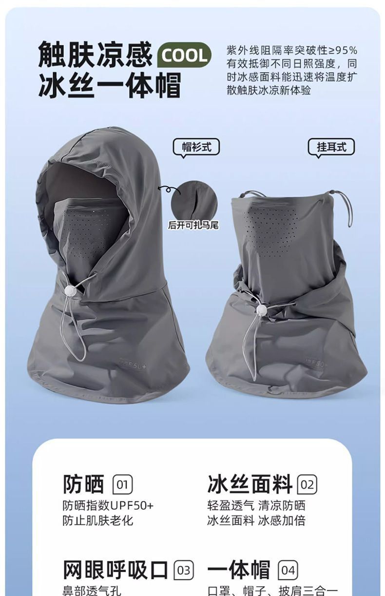 【男女同款 面罩帽子一体】夏季防晒面罩帽子遮阳帽女冰丝透气围脖开车面巾护颈