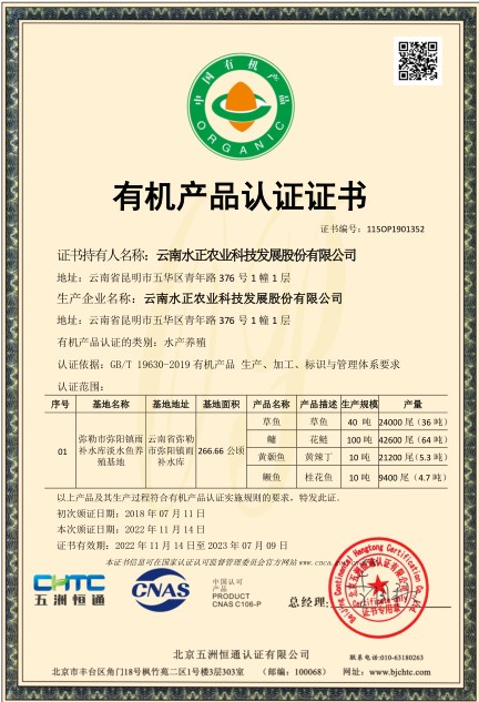 在天然水域中,利用自然界生态食物链低密度养殖,整个养殖过程不投肥,不喂料,按照鱼类自然习性适时捕捞,是一种可持续性的,循环的生态养殖方式,该养殖方式可以保护水域自然环境,还可净化水质,经认证,已经取得了水产养殖《有机认证证书》。