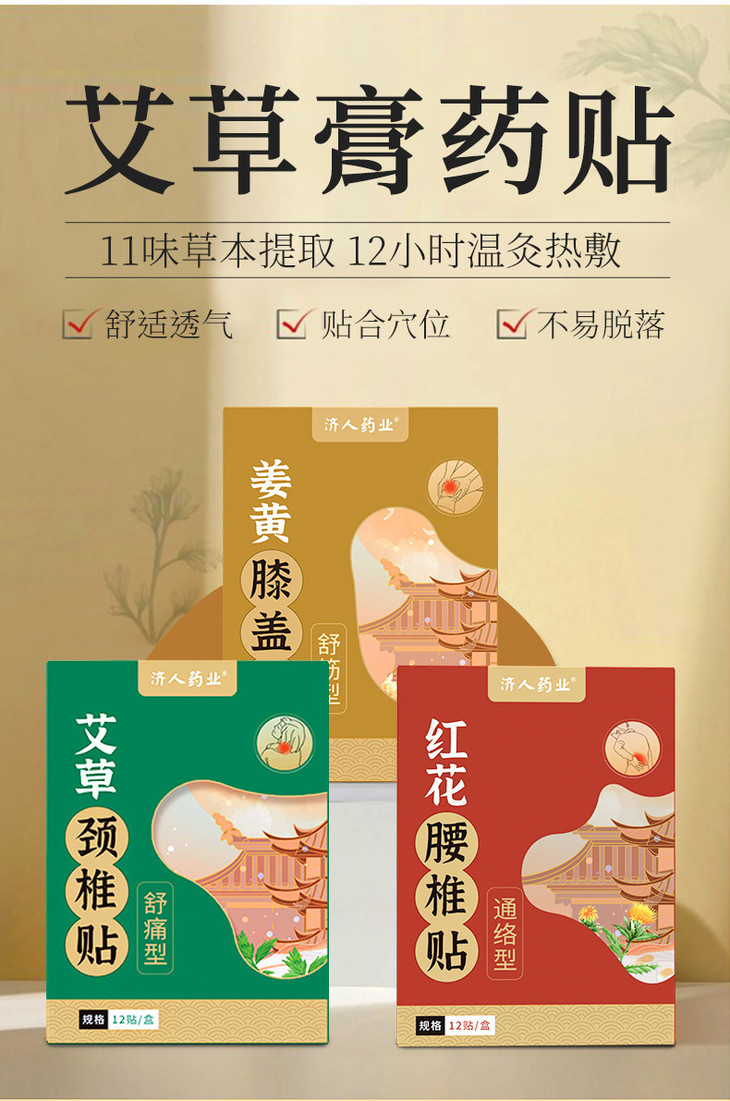 艾草颈椎贴关节贴 家用艾灸生姜温灸颈椎膝盖艾草贴