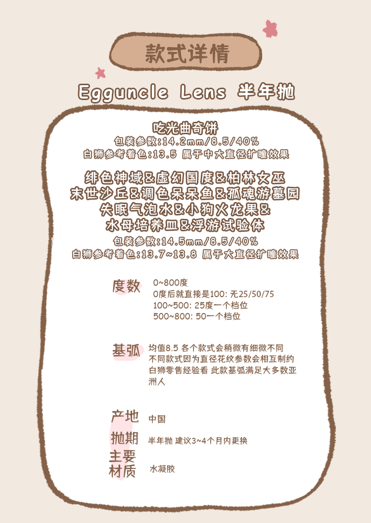 EggUncle Lens旗下 ·半年抛 柏林女巫&虚幻国度&绯色神域 |14.5mm白狮参考着色大直径 2片