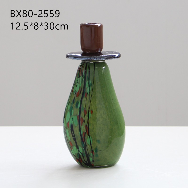 高级感水彩手工玻璃花瓶中古奶油色玄关琉璃法式插花器装饰品摆件