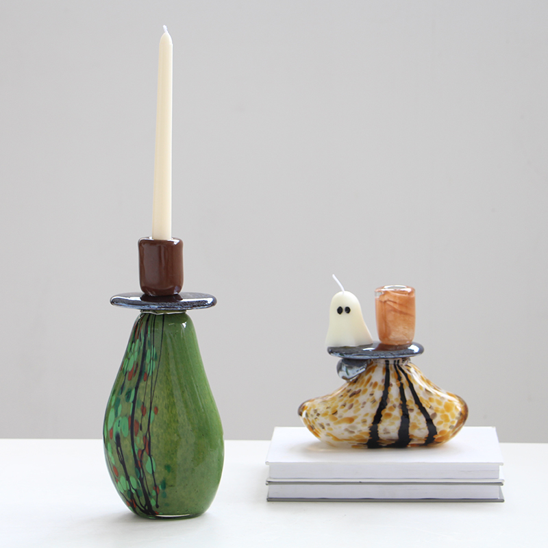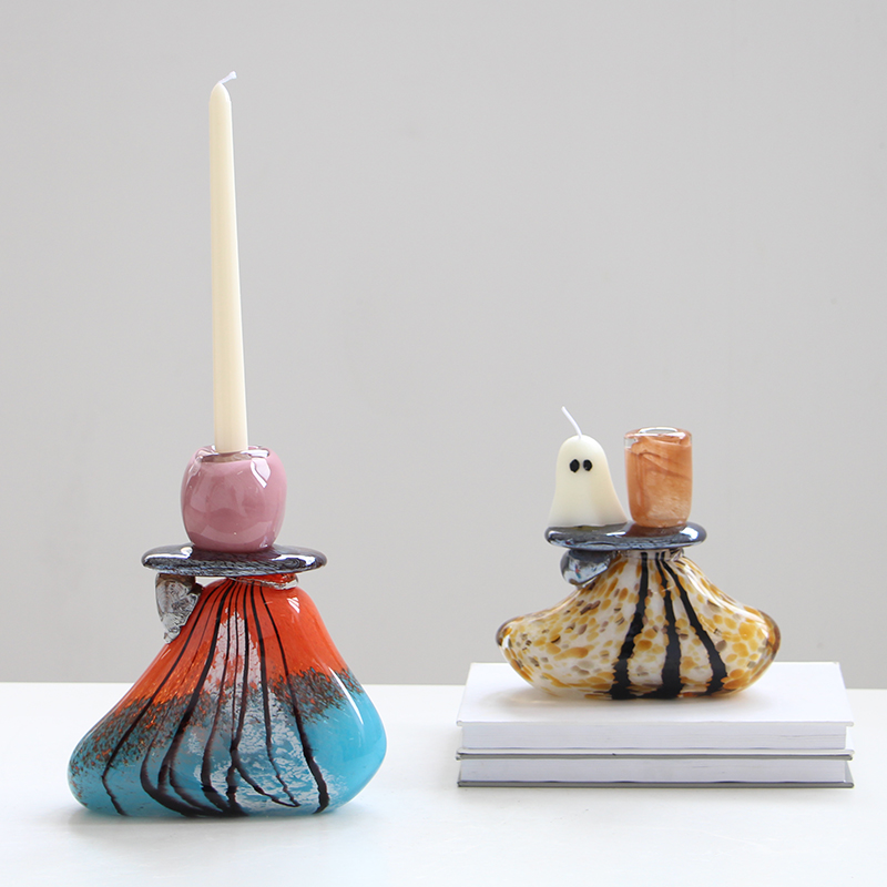 北欧ins风彩色玻璃烛台网红餐厅创意烛台摆件简约婚庆软装装饰品