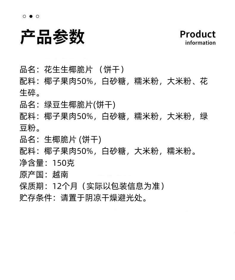 越南进口MY PHUONG FOOD生椰脆片饼干150g 多口味