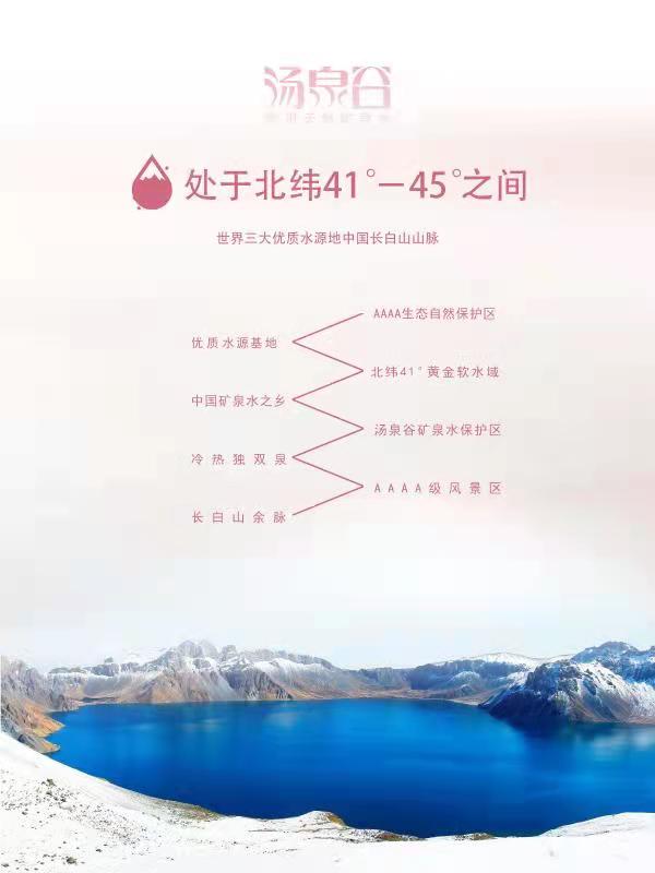 囍水汤泉谷:汤泉谷天然矿泉水,汲取自北纬41°至45°的黄金水域水源,是低钠、低矿化度、重碳酸钙的偏硅酸型矿泉水,尤其含“偏硅酸“,其含量高出国家标准近一倍,具有优于普通矿泉的柔韧特质,维系身体运输通道的畅通活力,让全身及时获得养分而富有健康弹性。