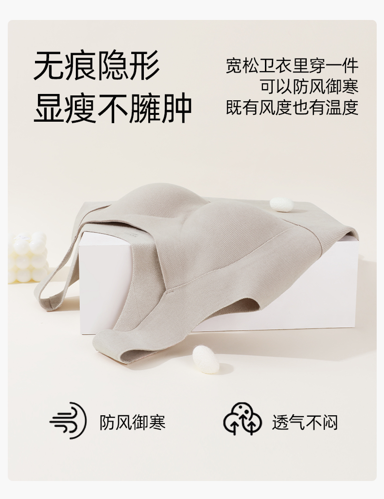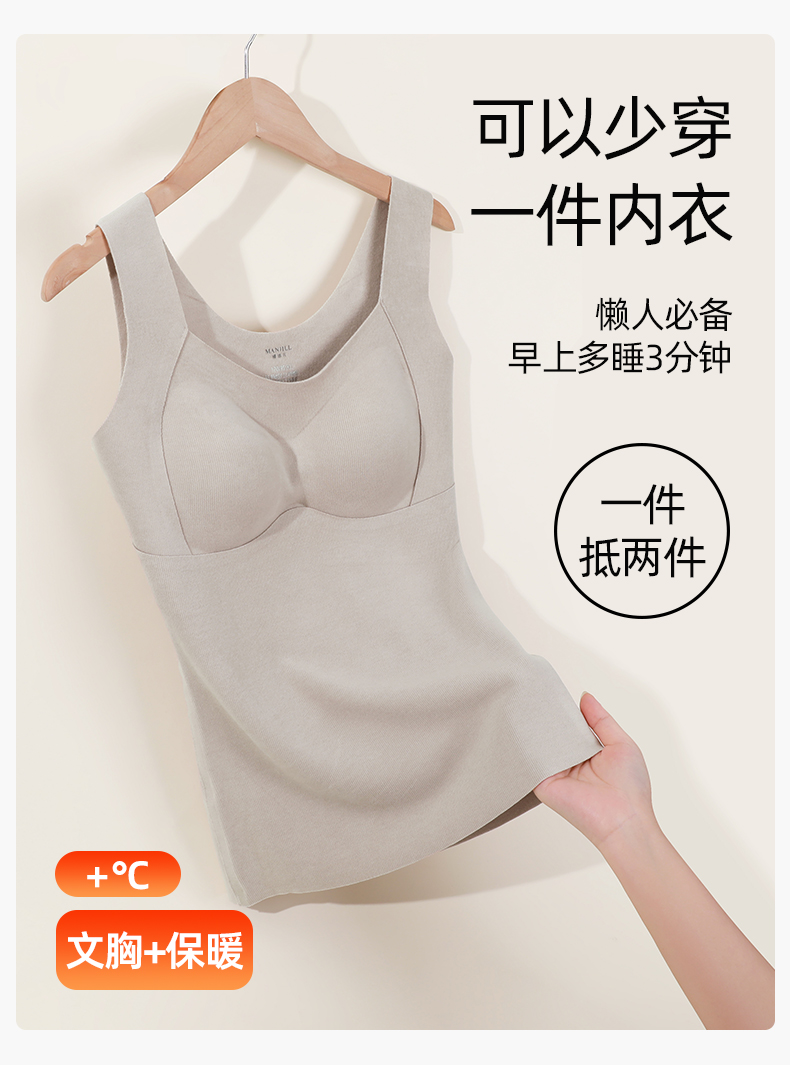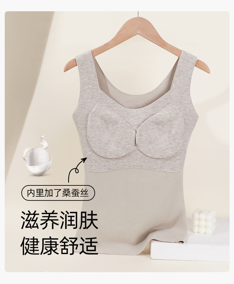 熳洁儿 保暖背心带杯垫可拆卸含桑蚕丝无痕保暖打底24757102