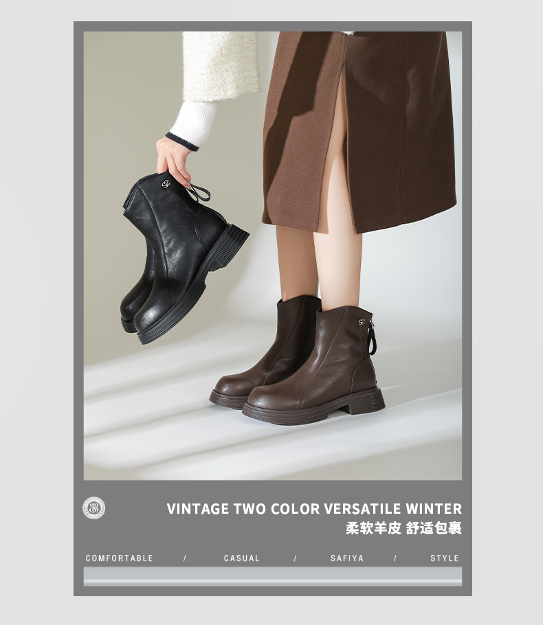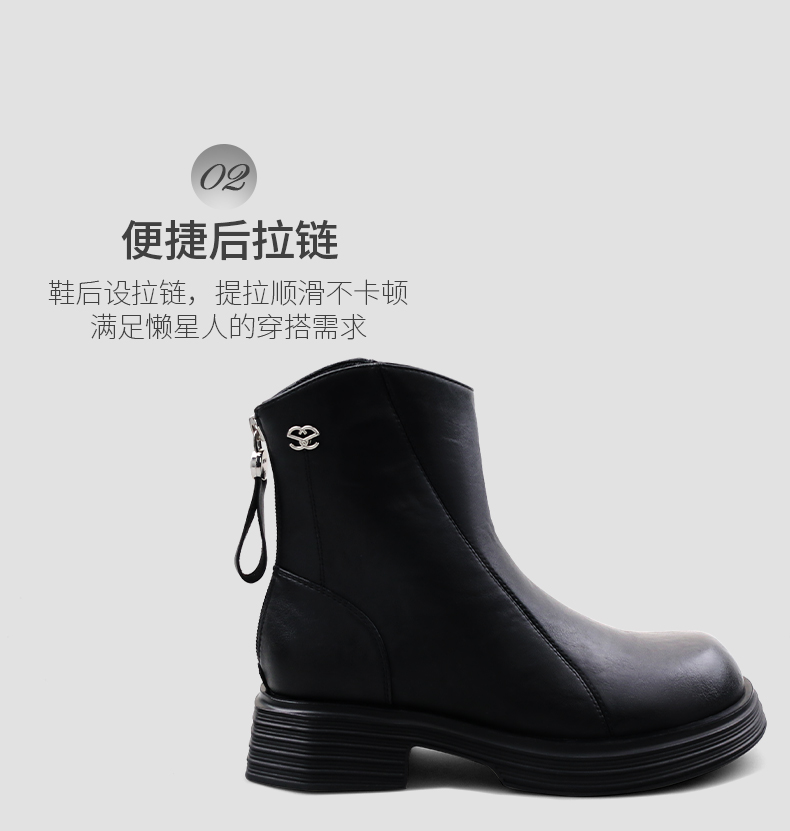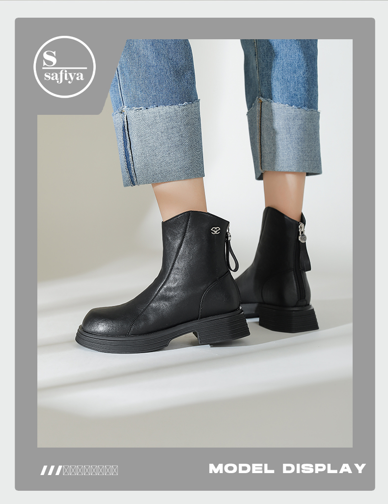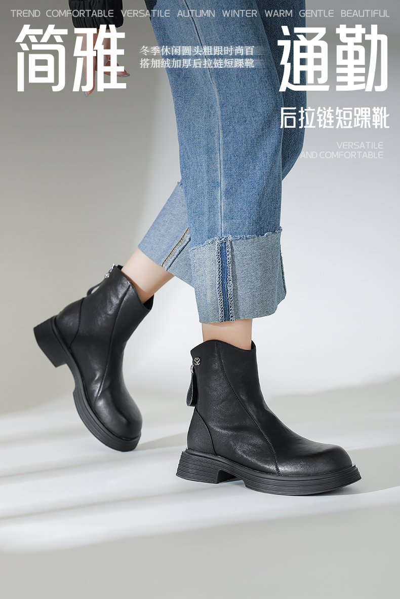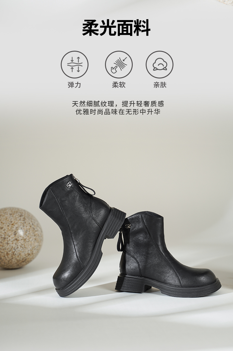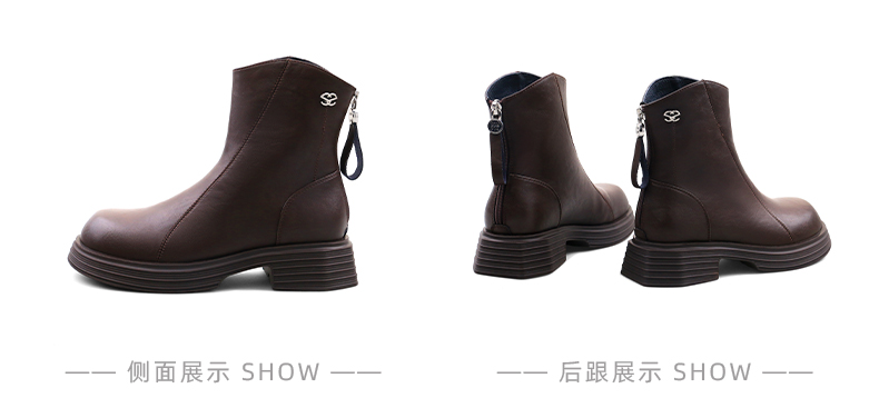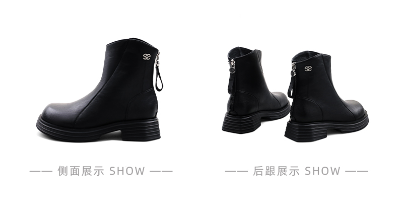 预售10天发|Safiya/索菲娅2024冬休闲圆头粗跟时尚百搭加绒加厚后拉链短踝靴 SF44116413/SF44118413